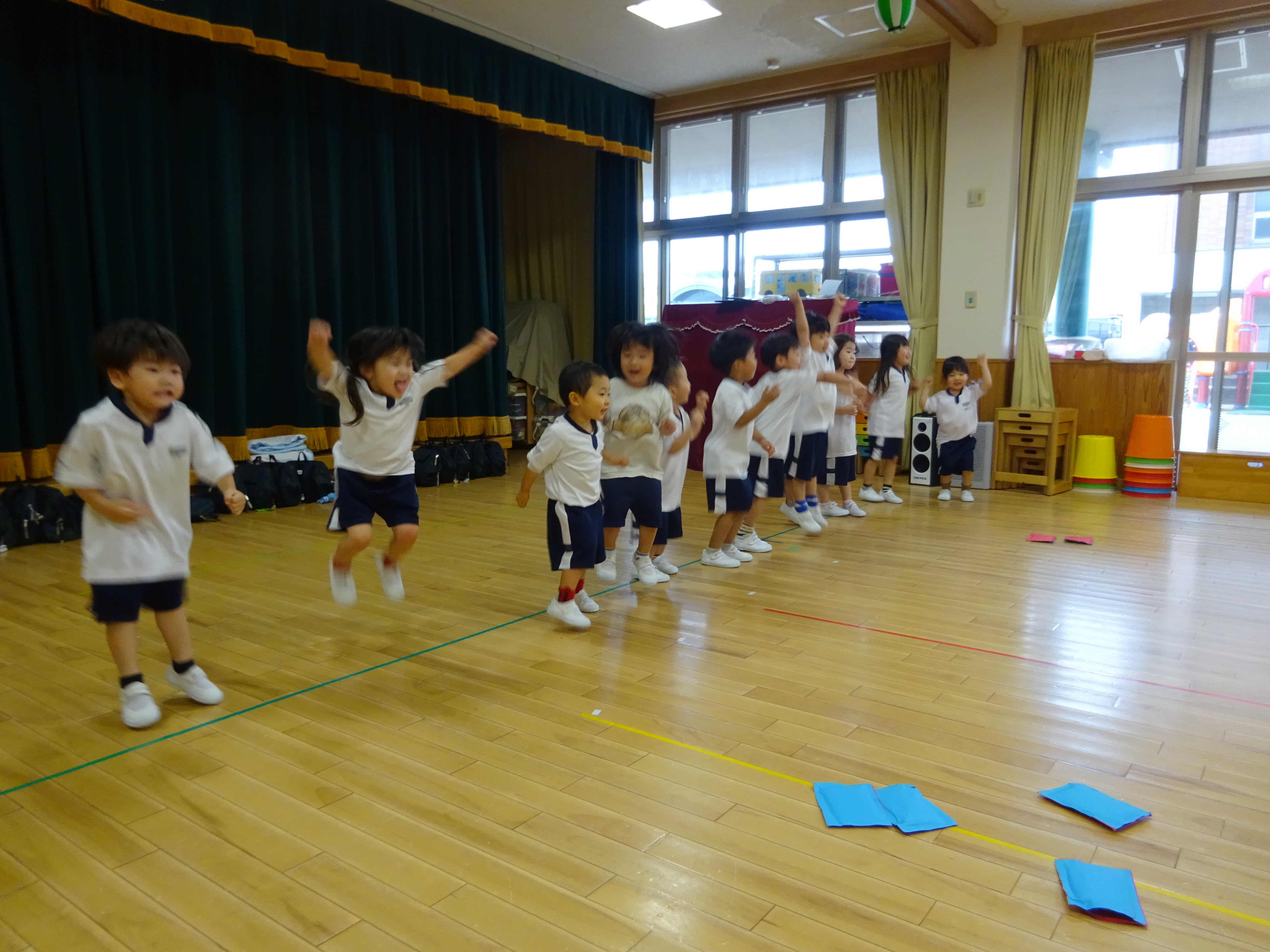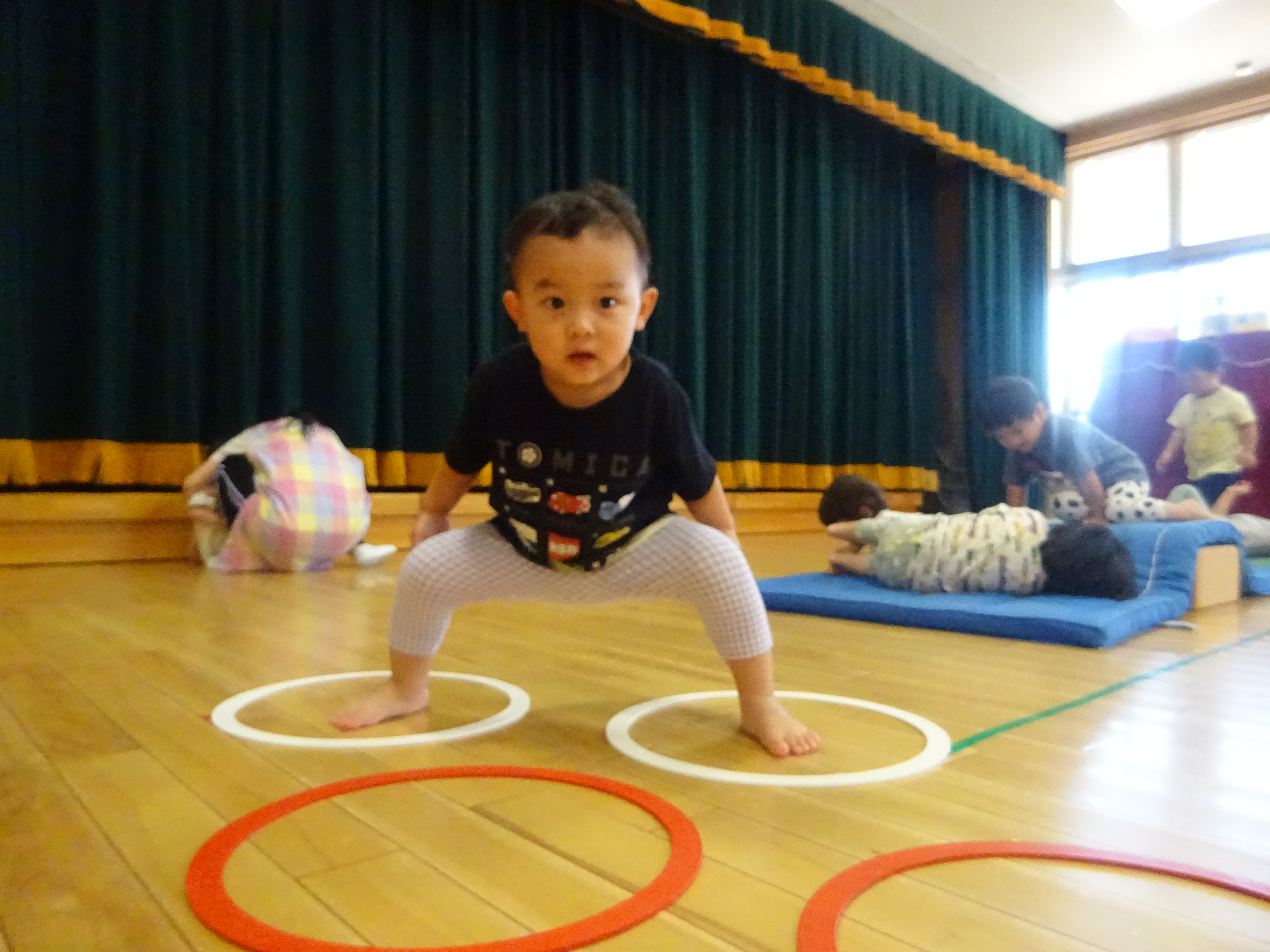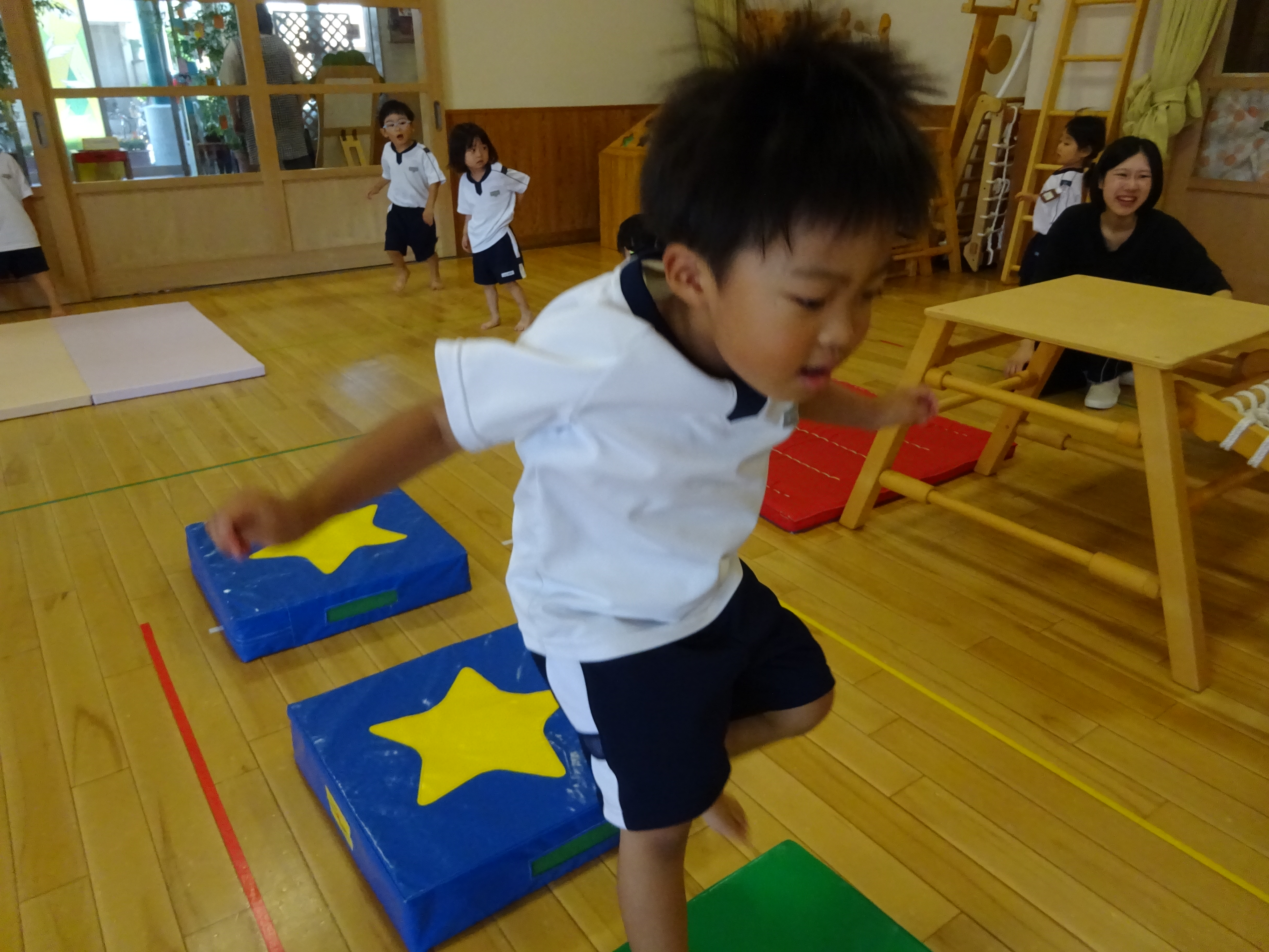 今日はホールでサーキット遊びをしました。 けんけんぱのコーナや滑り台、ジャンプのコーナーなど5つのコ...