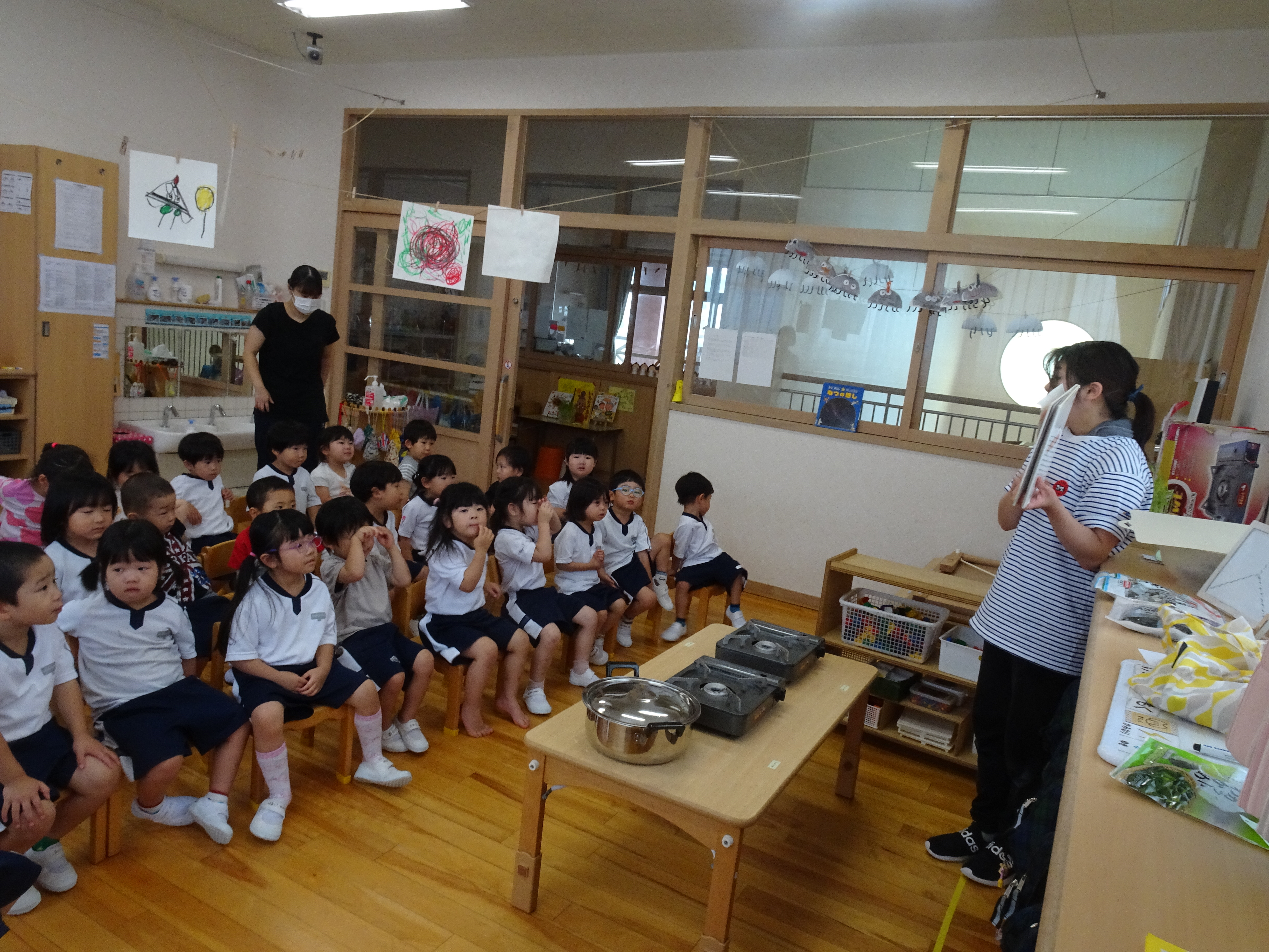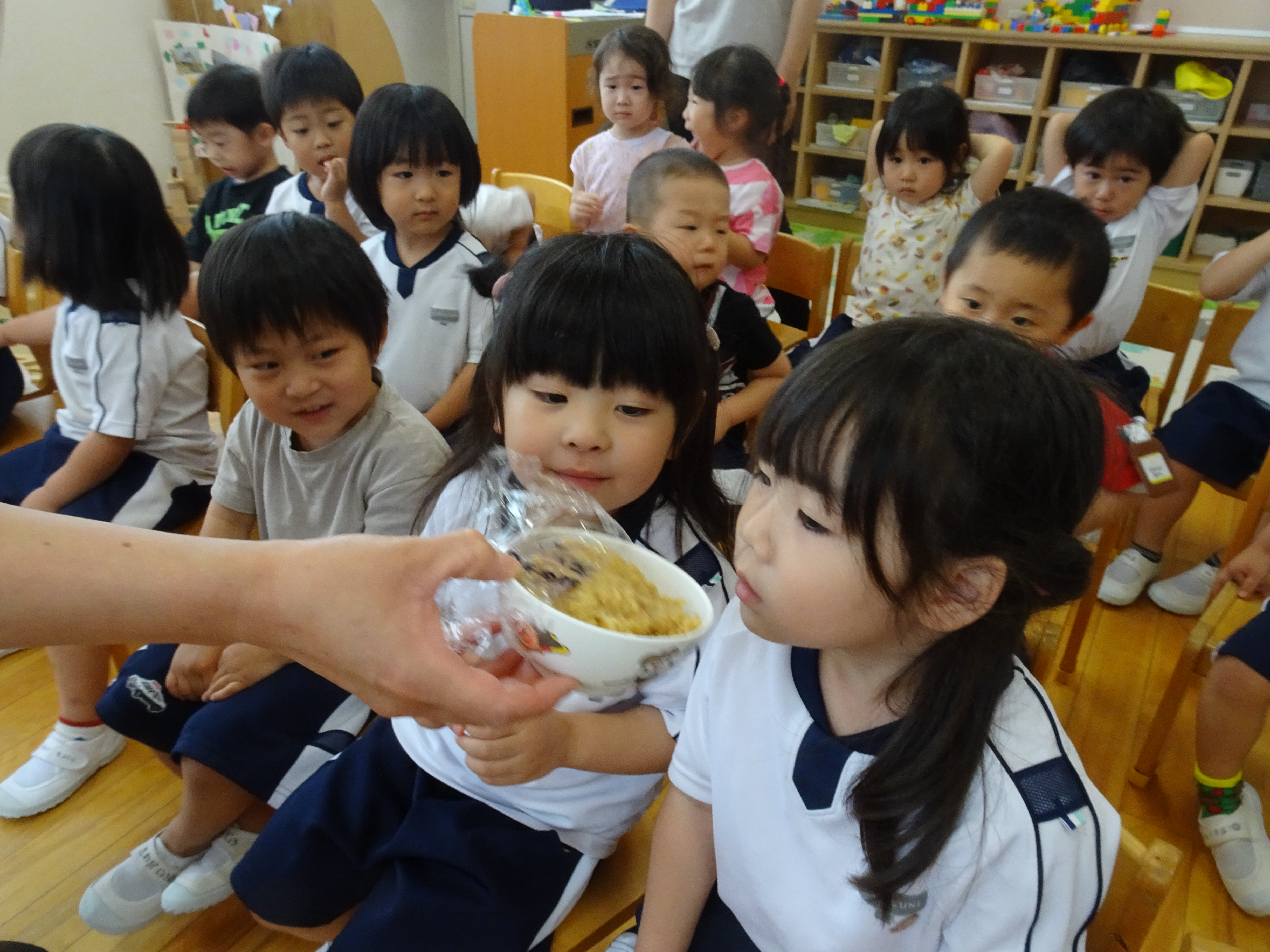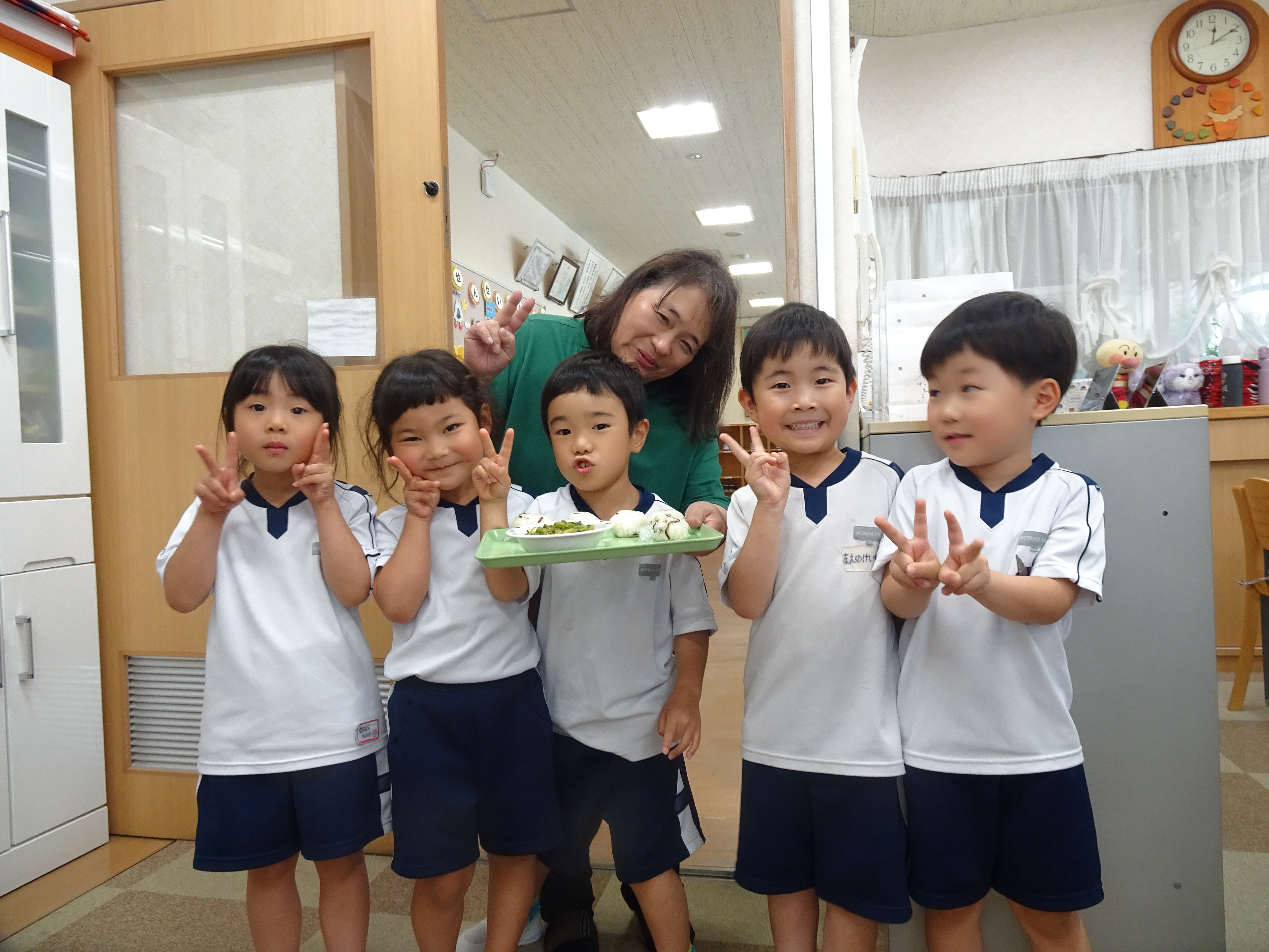 今日は収穫した「枝豆」「きゅうり」と保育室で育てていた「豆苗」を使って「枝豆ごはん」と「豆苗ときゅう...