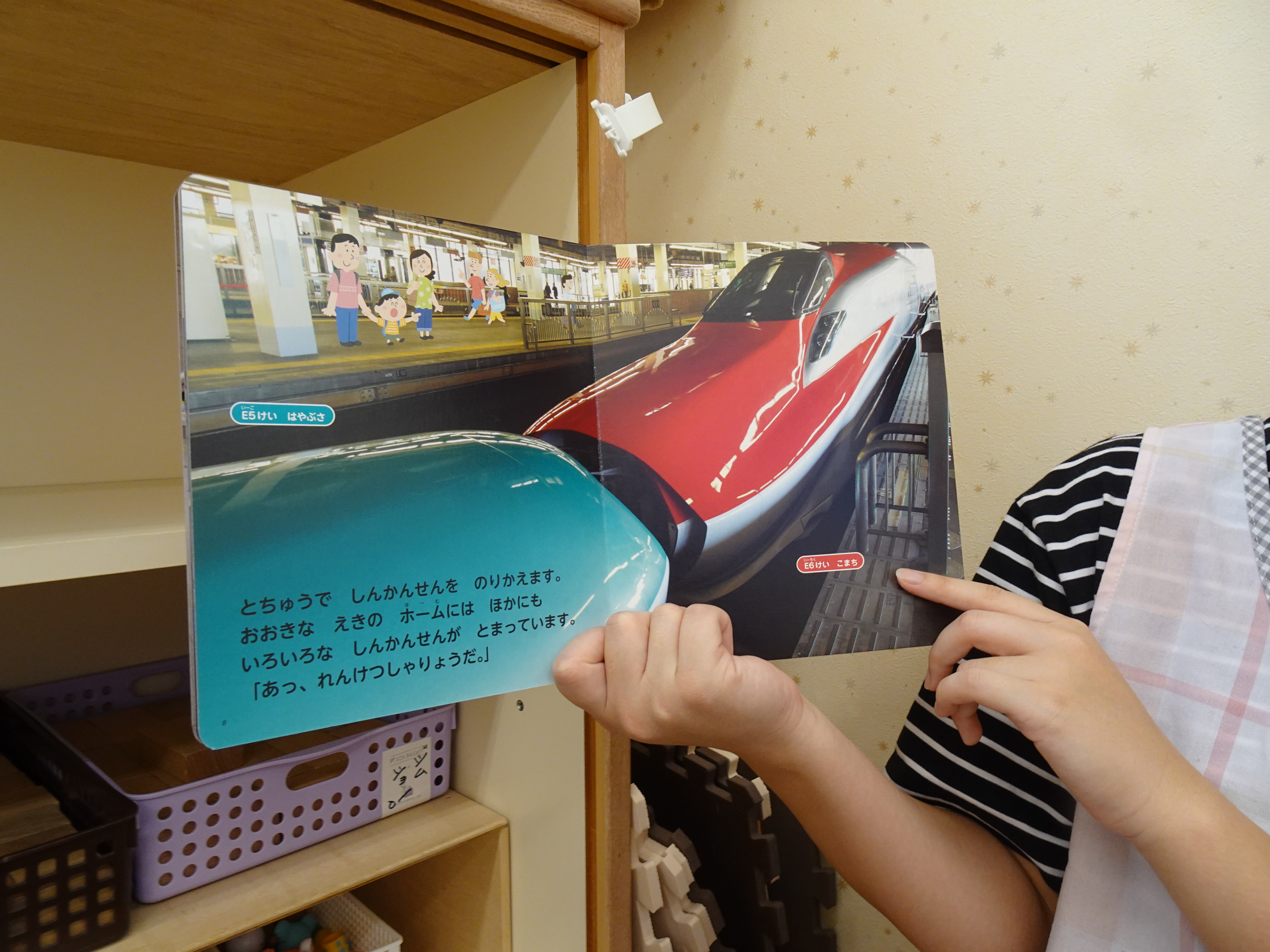 今月の月間絵本は『でんしゃでおでかけ』🚅 乗り物が好きなお友達も多く「電車や!!」「しんかんせんっ♪...