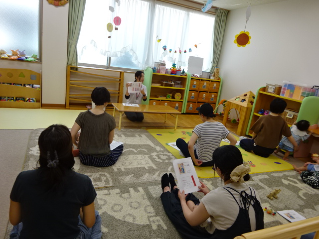 今日はお話ランドと8月生まれのお友だちのお誕生日会をしました。 まずは、「とんでったばなな」の歌をう...