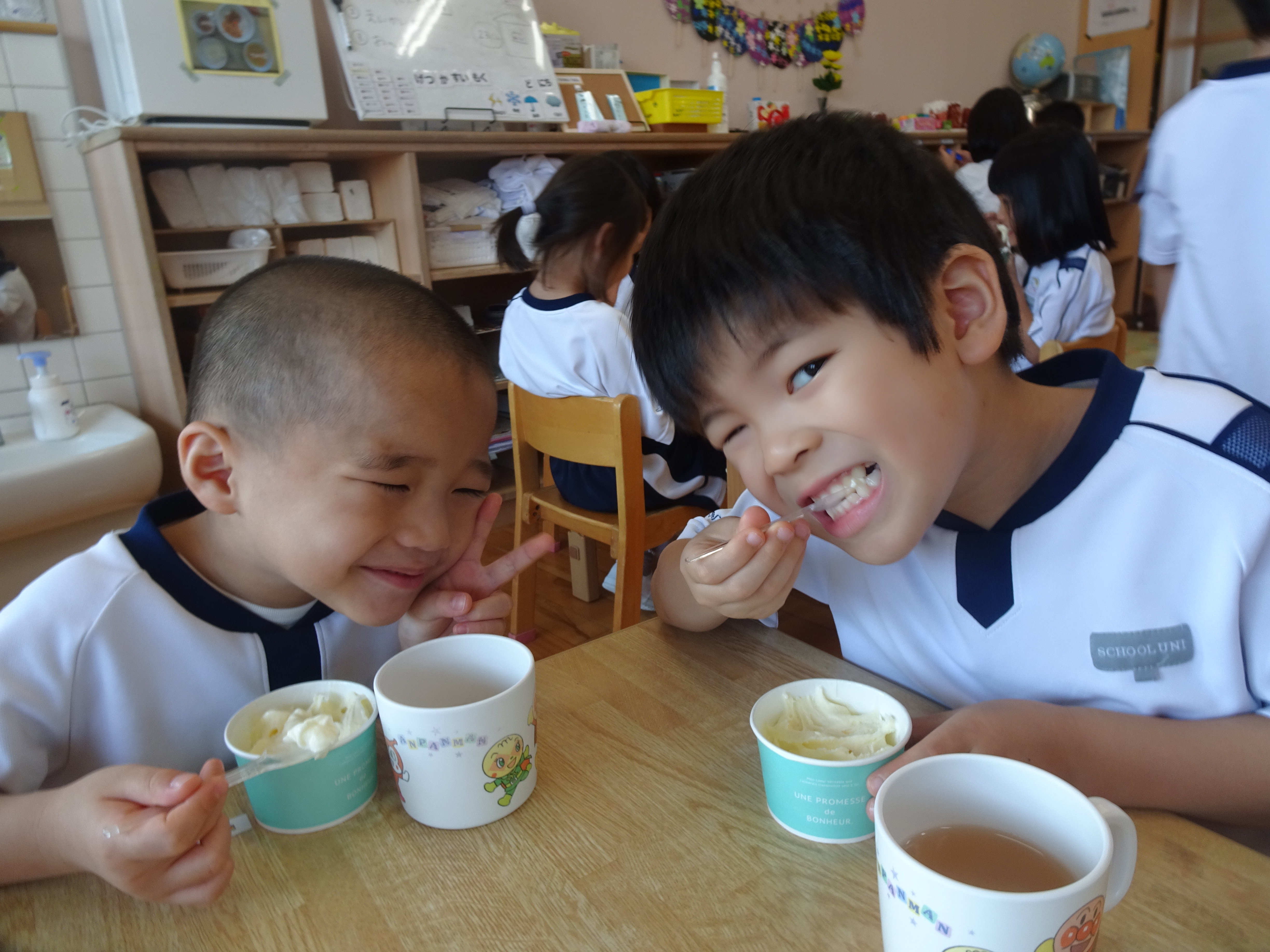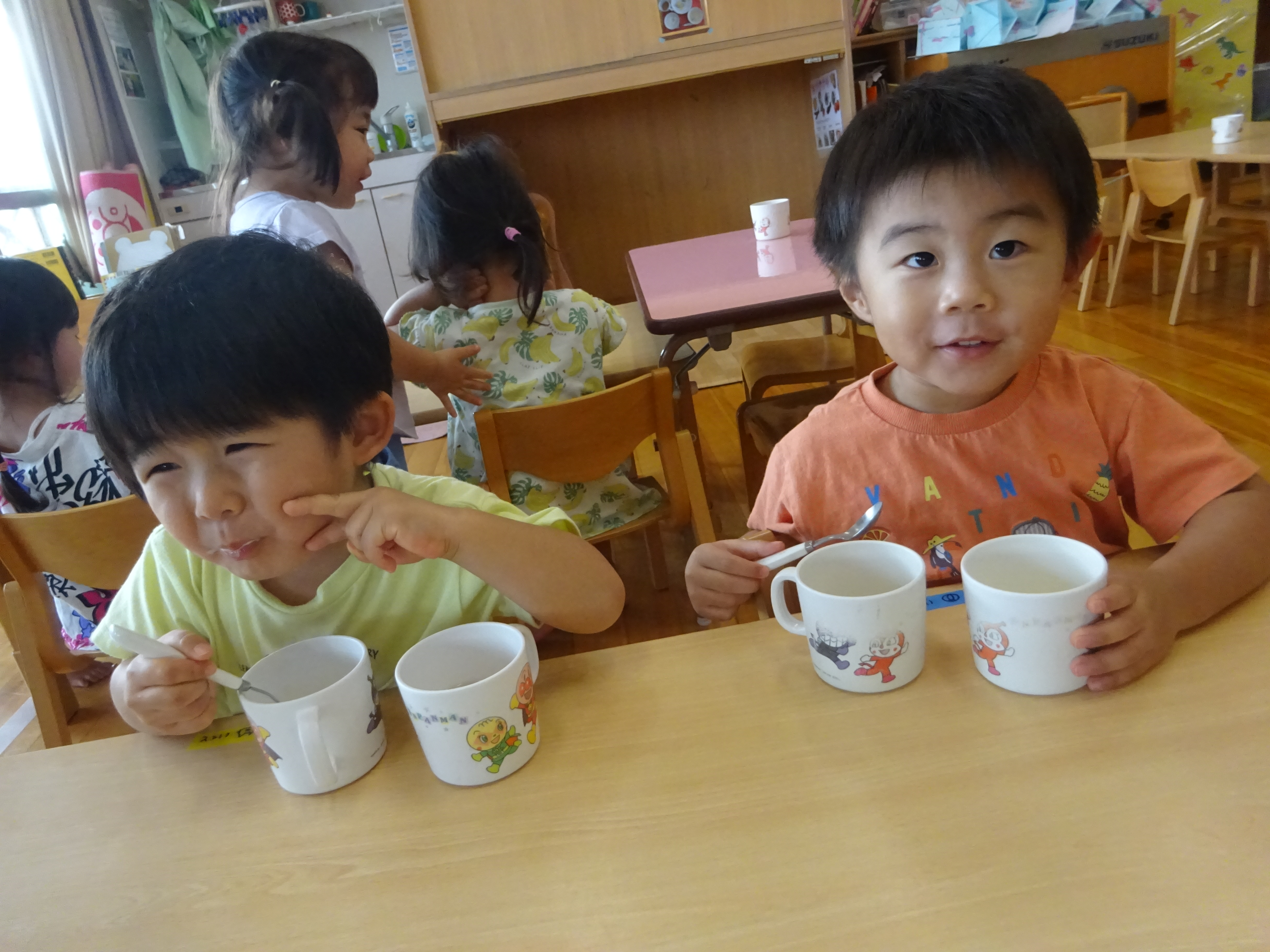 今日のおやつはみんな大好きソフトクリームでした^^ おやつがソフトクリームだということを知らせていた...