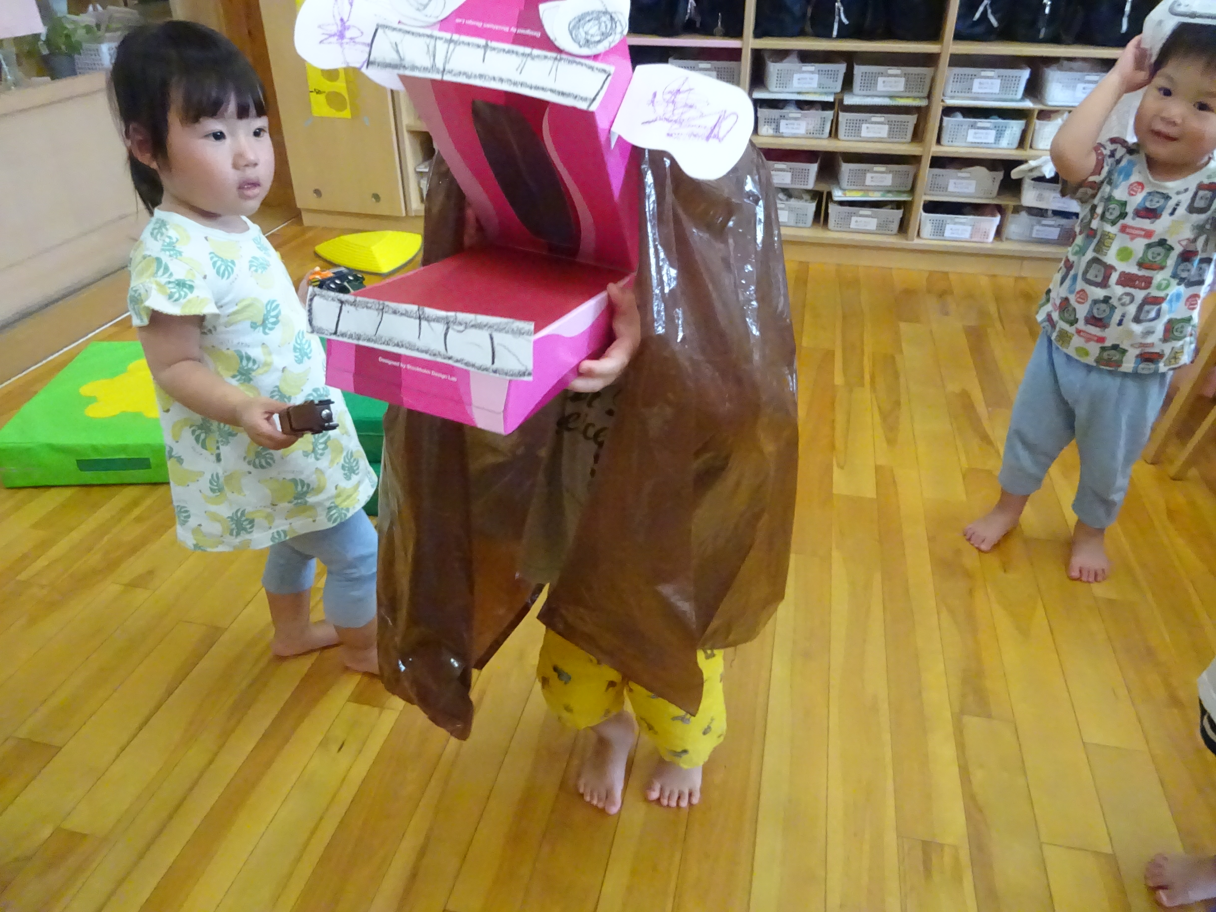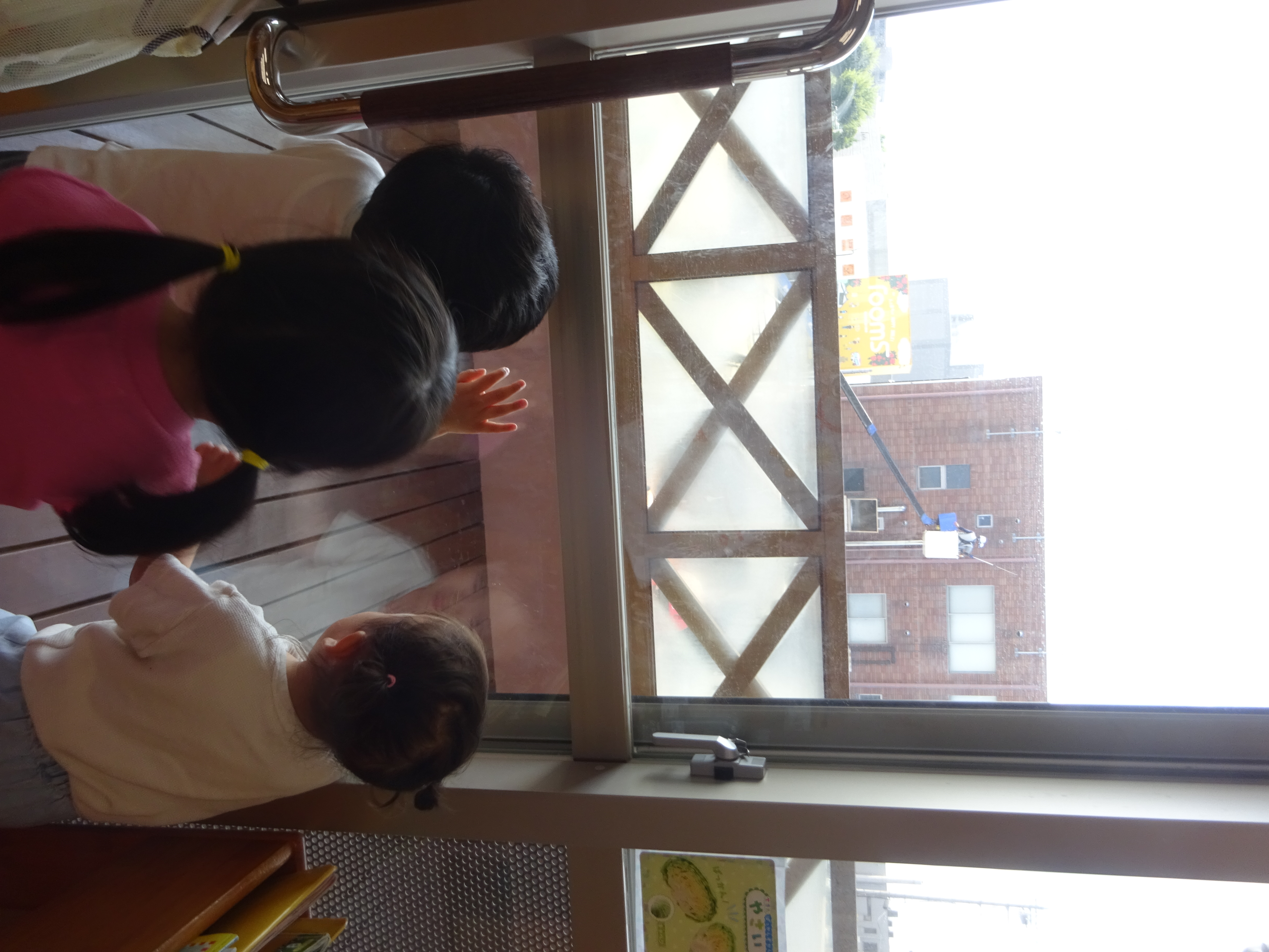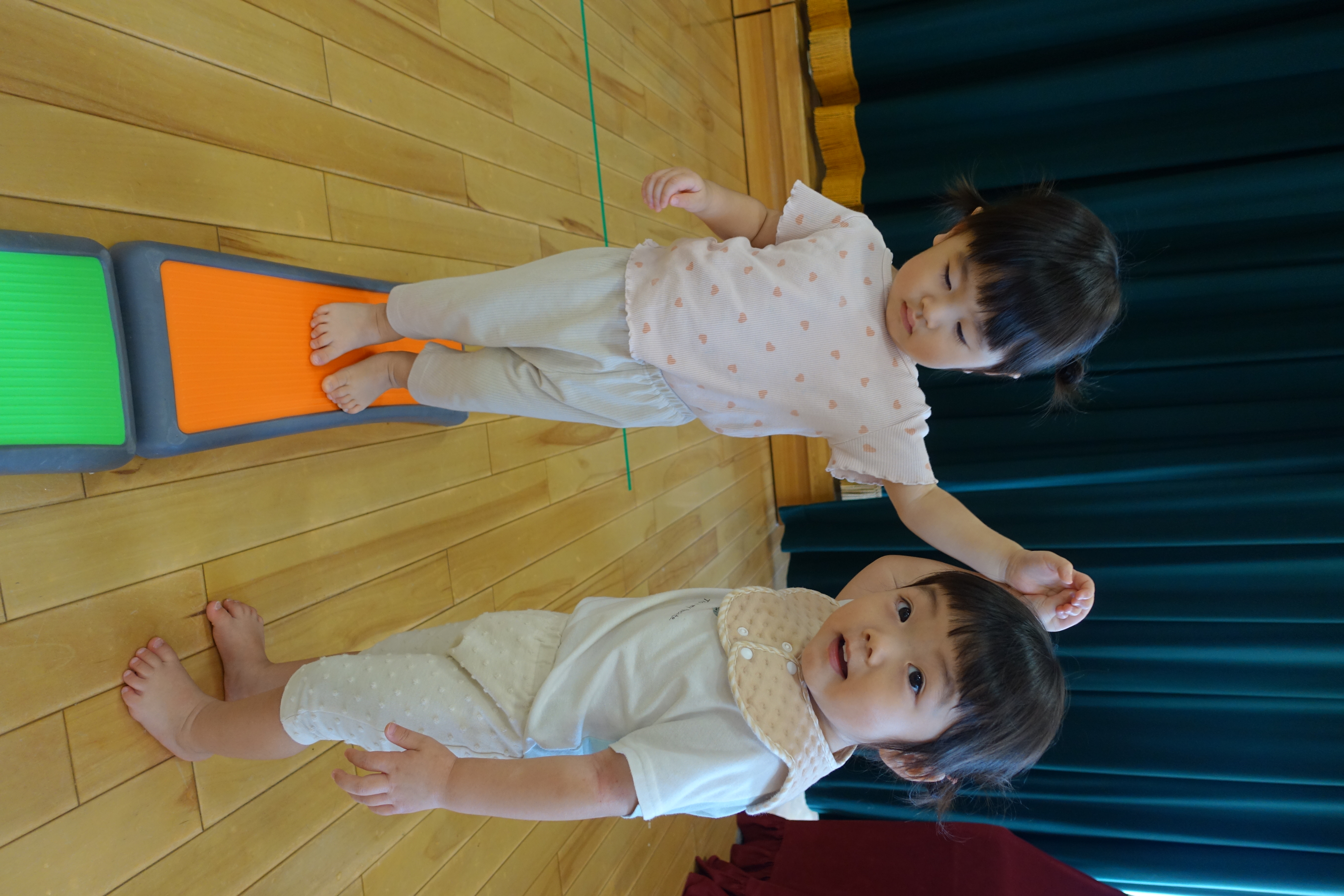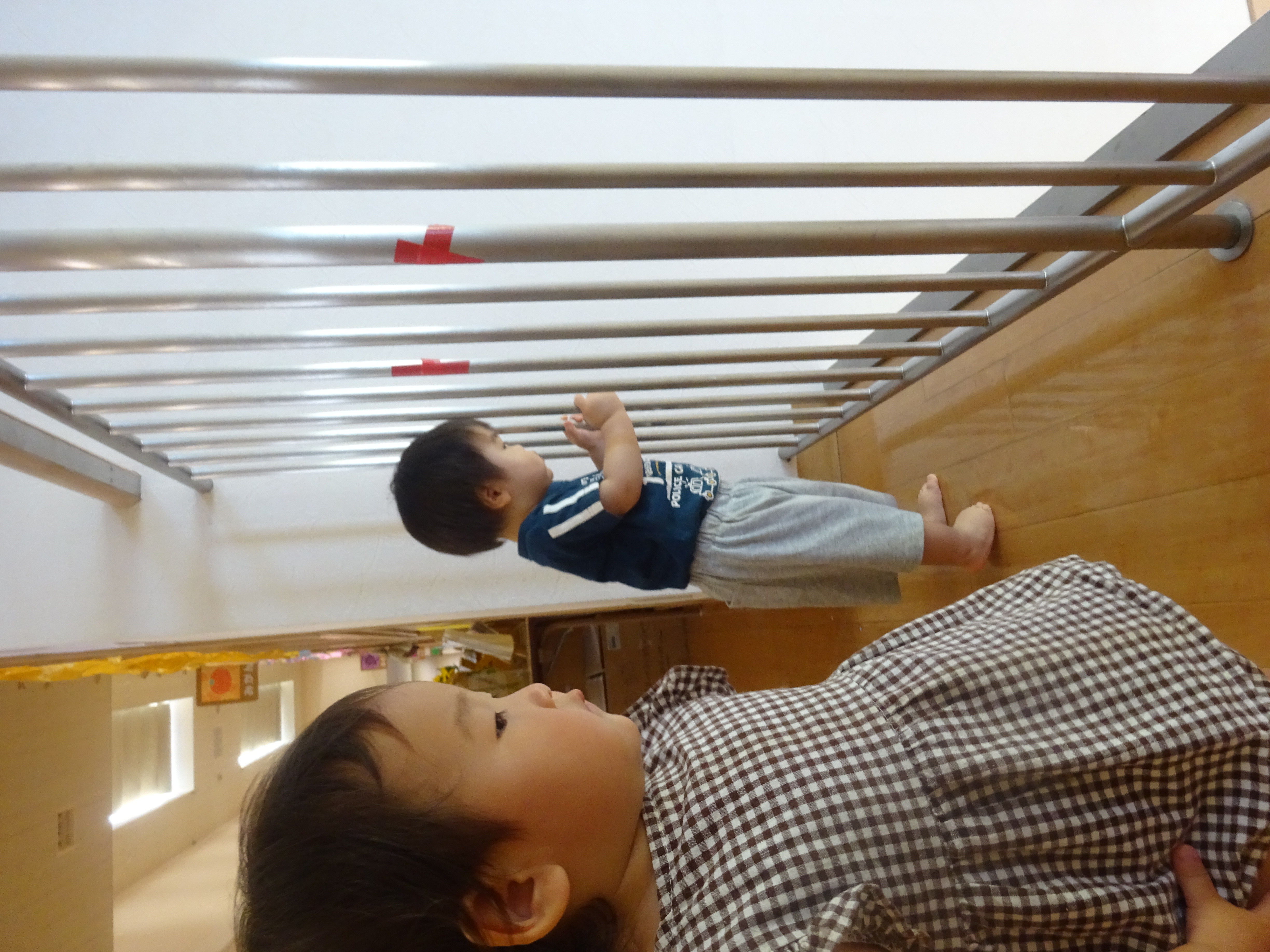 今日はお部屋とホールで遊びました^^ お部屋で遊んでいると何やら発見するこどもたち! 見てみる高所作...