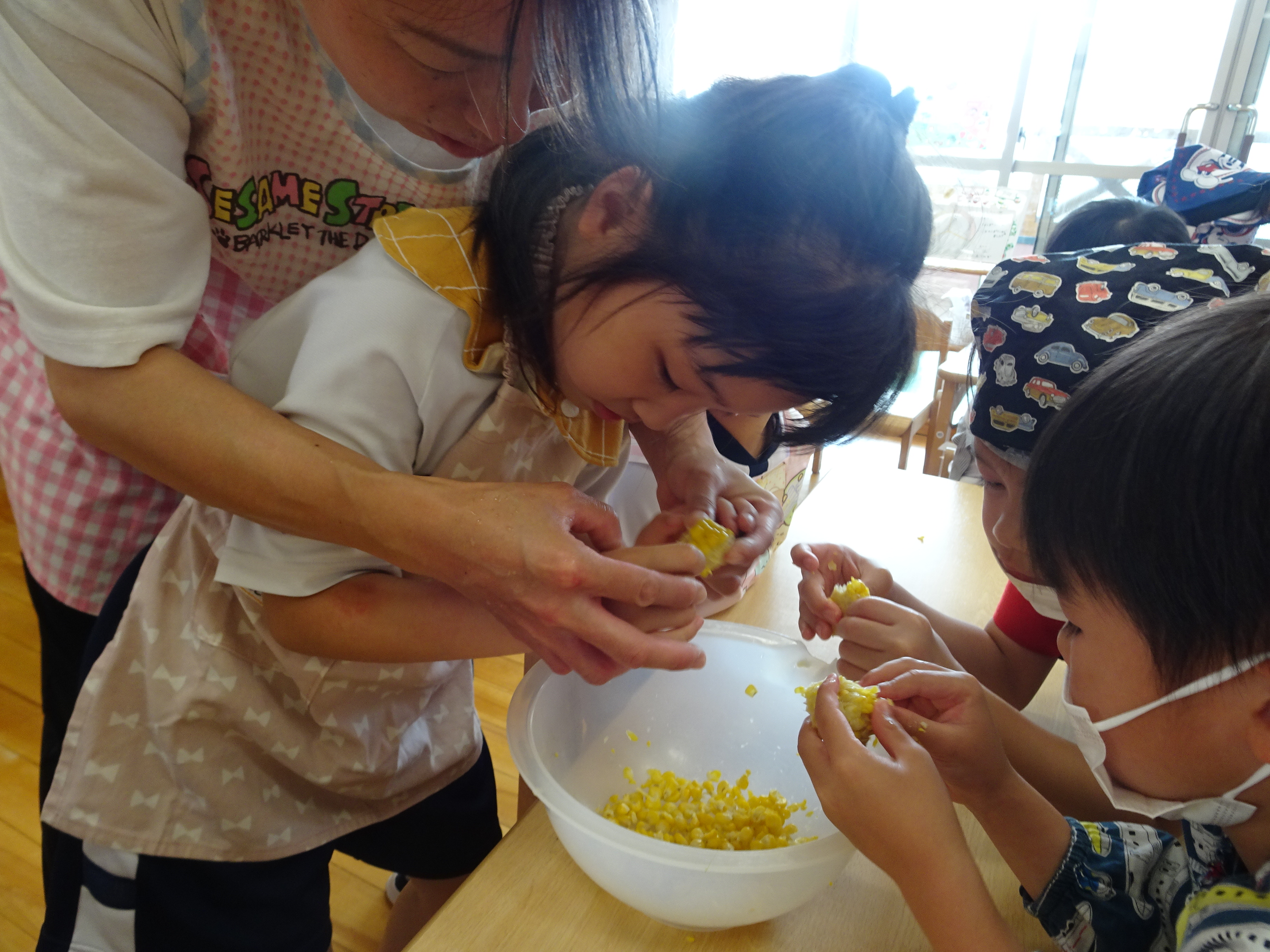 今日は、夏恒例になってきたMちゃんのおばあちゃんが送ってくれたトウモロコシとみんなで育てたズッキーニ...