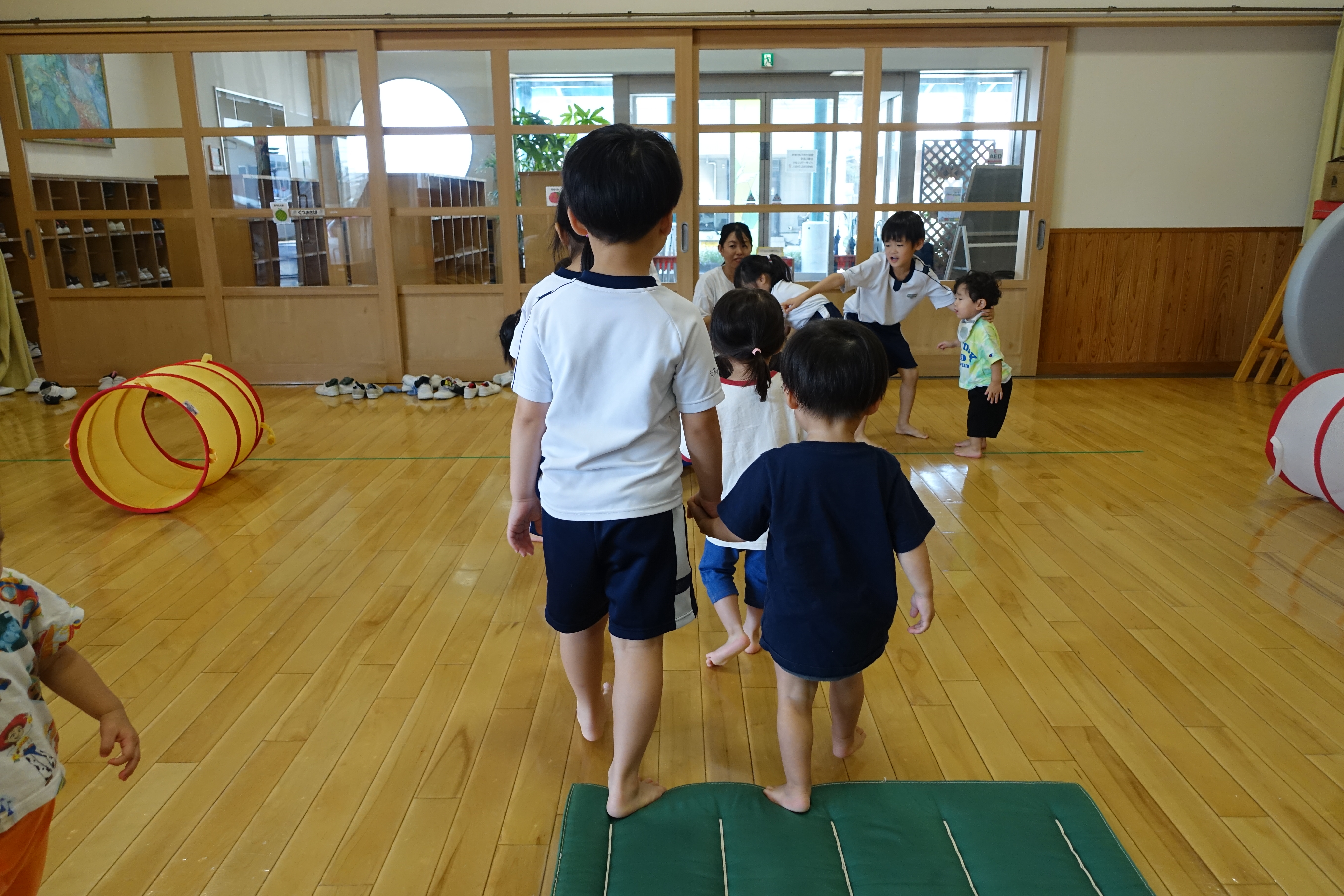 週明け月曜日☀今週も元気な子どもたちです💕 ホールで遊んできましたよ。 ジャクエツランド(巧技台)を...