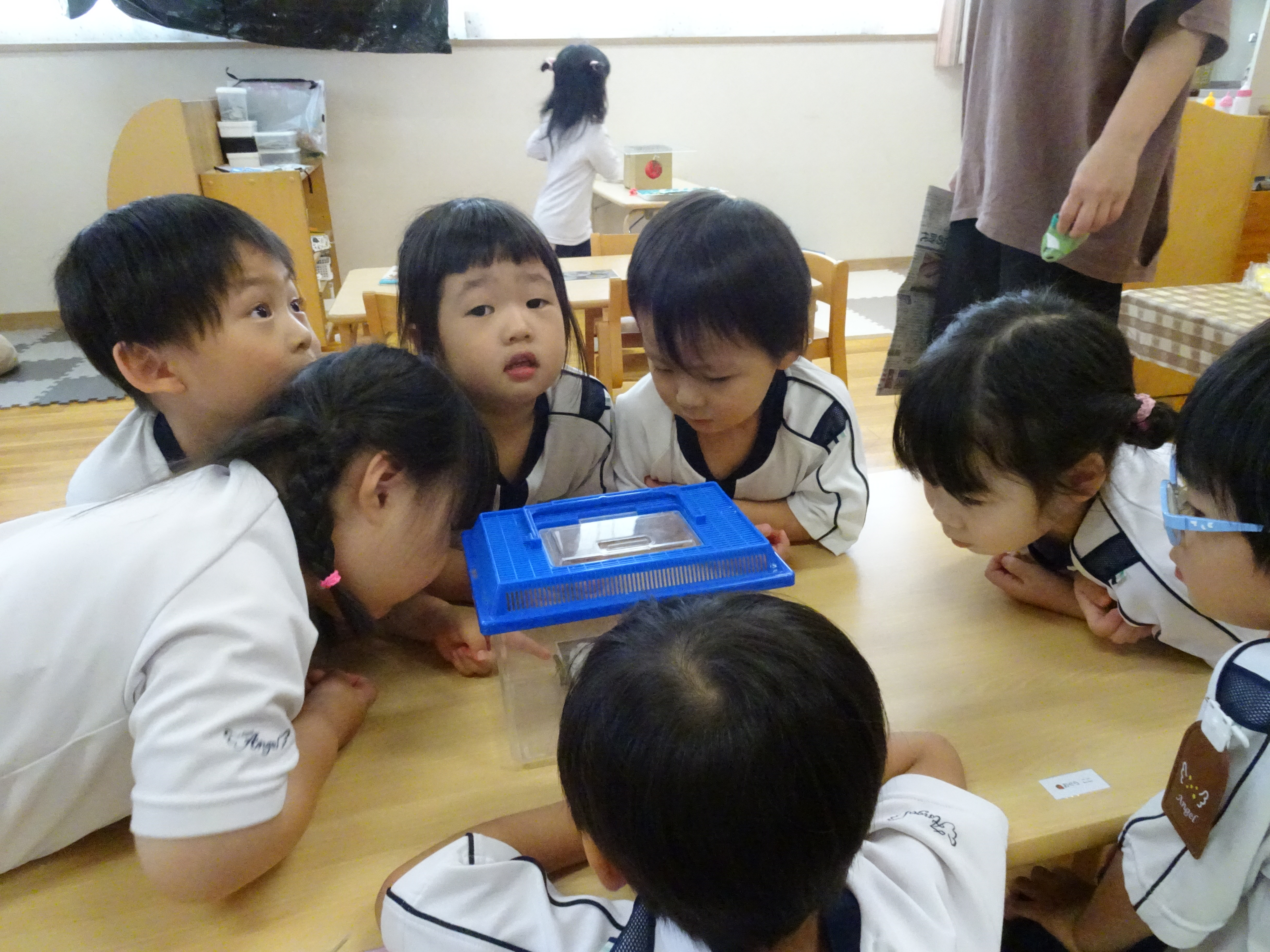 今日は保育園の前で見つけて捕まえたよ! とJくんがバッタを捕まえてくれたのでみんなで観察🔎 何しとる...