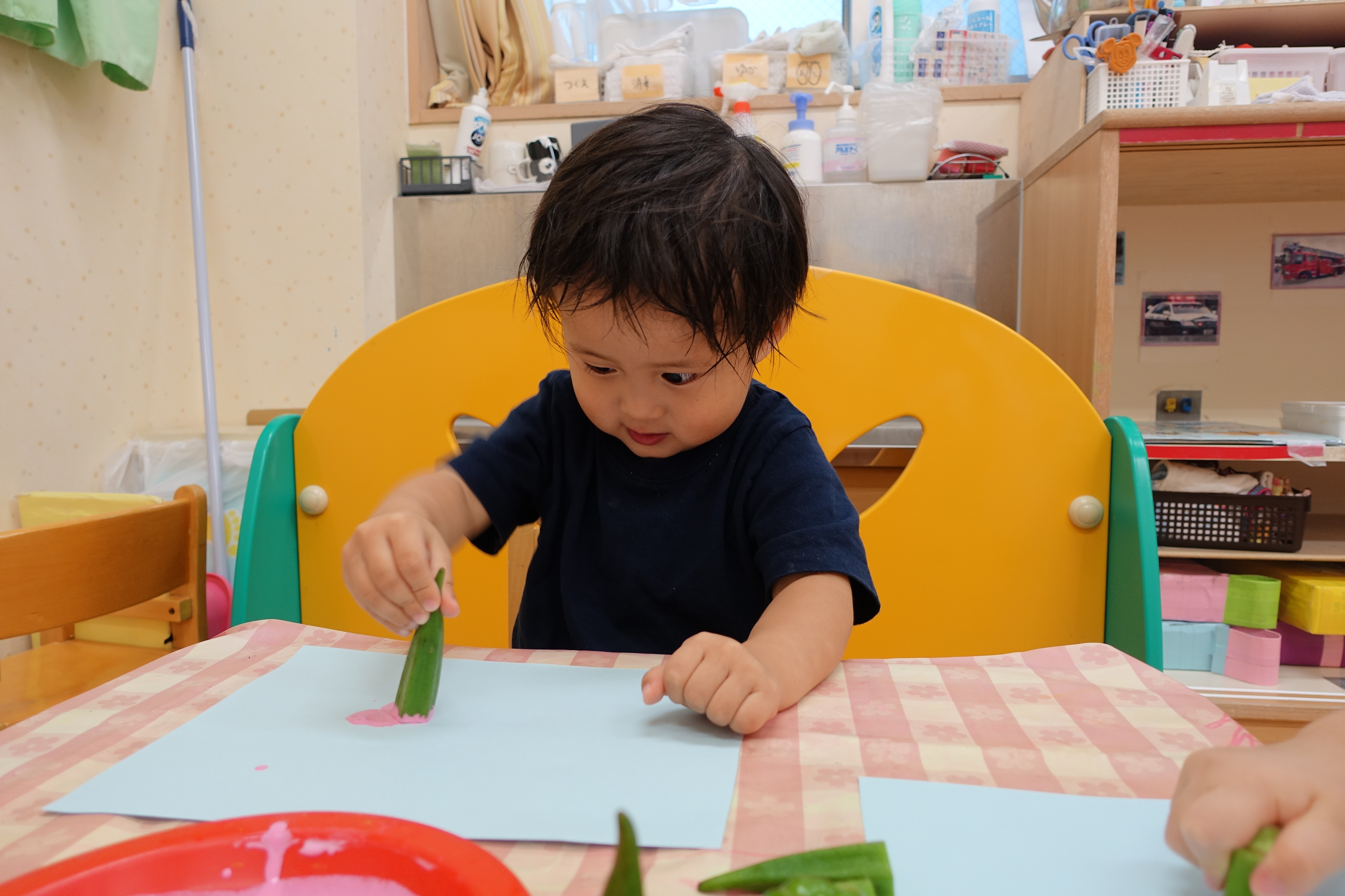 お部屋で過ごしました。 先月も大人気だった野菜スタンプ✨ 再び楽しんでみました! 2回目と言うことも...