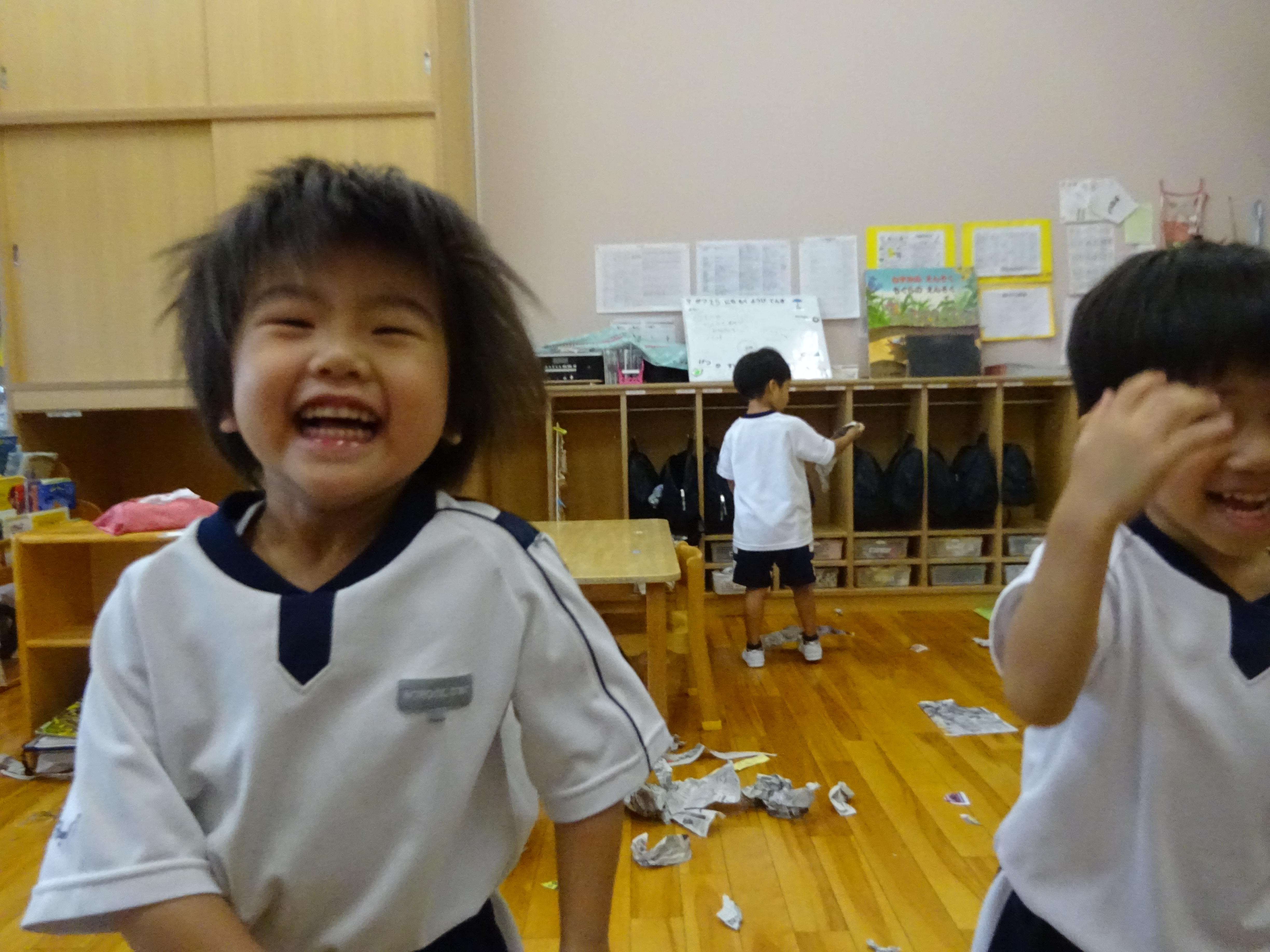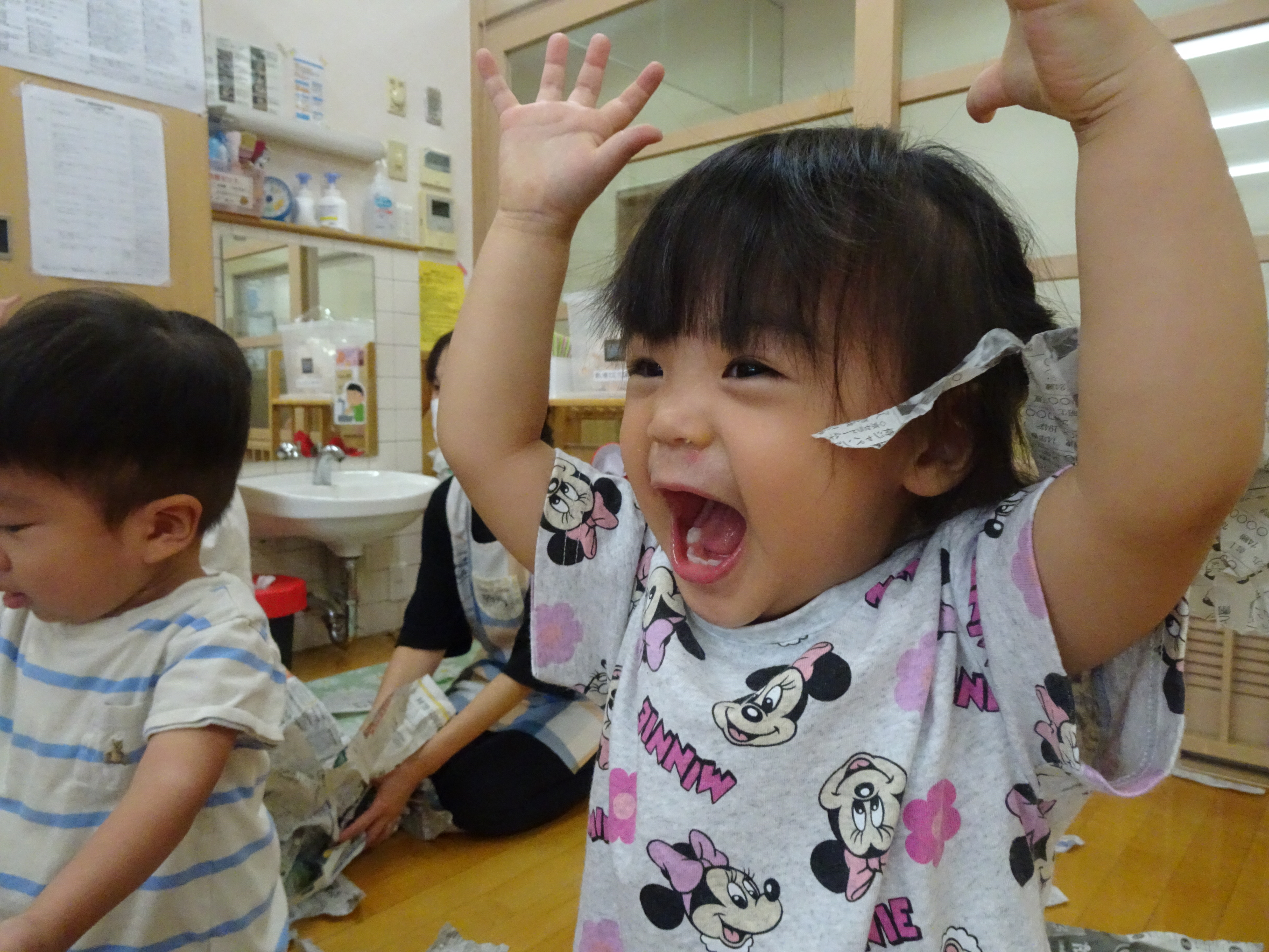 お部屋で新聞遊びをしました 「いいのかな・・・」という感じで最初はかなり...