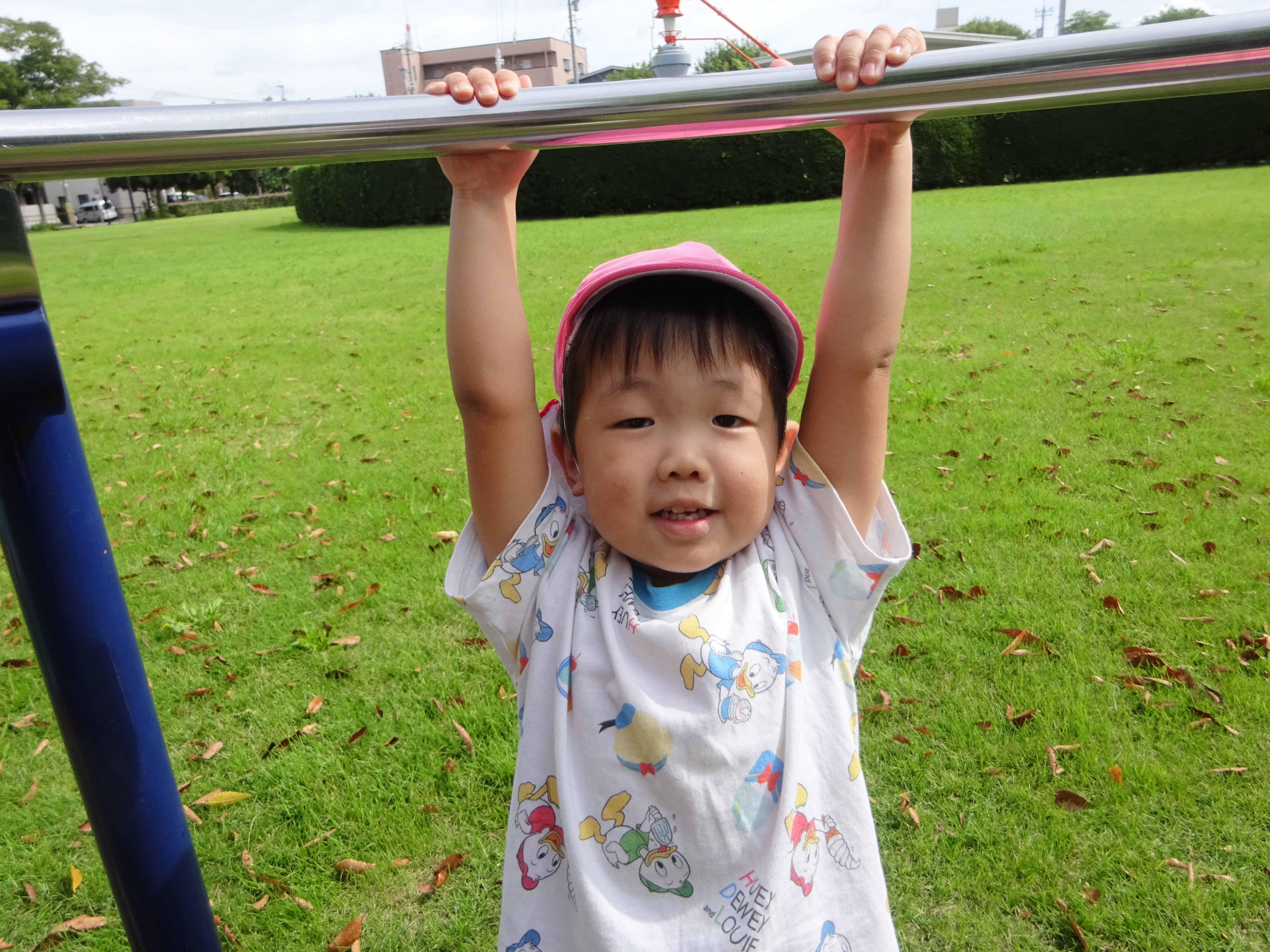 天気がよくて涼しくなったので今日も園庭で遊びました☆ 園庭遊びを満喫していた子どもたち♪ ロープの鉄...