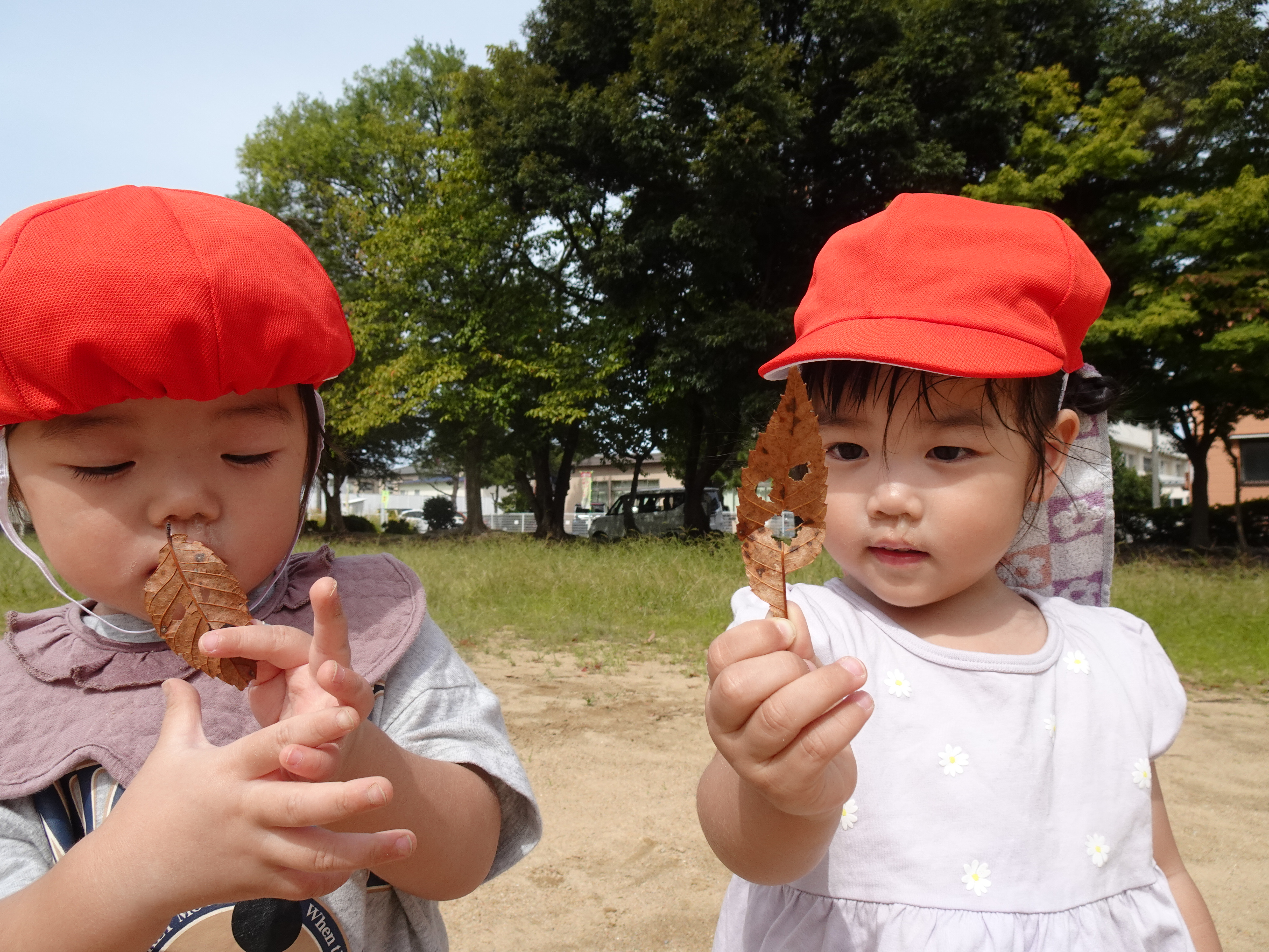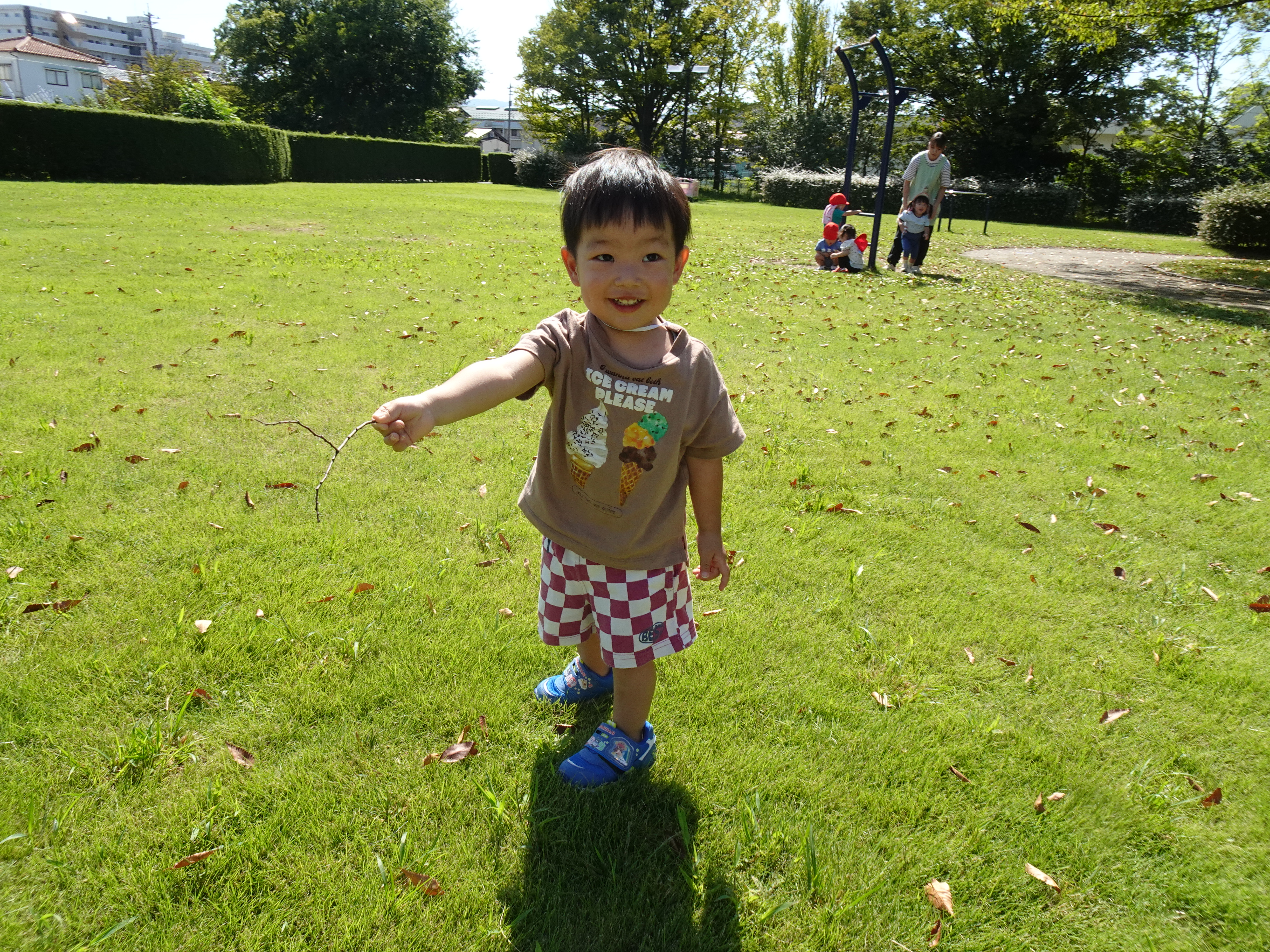 秋の自然物をゲットして嬉しそうな様子(^^♪たくさん走って、沢山見つけて、沢山遊べて良かったね✨機会...