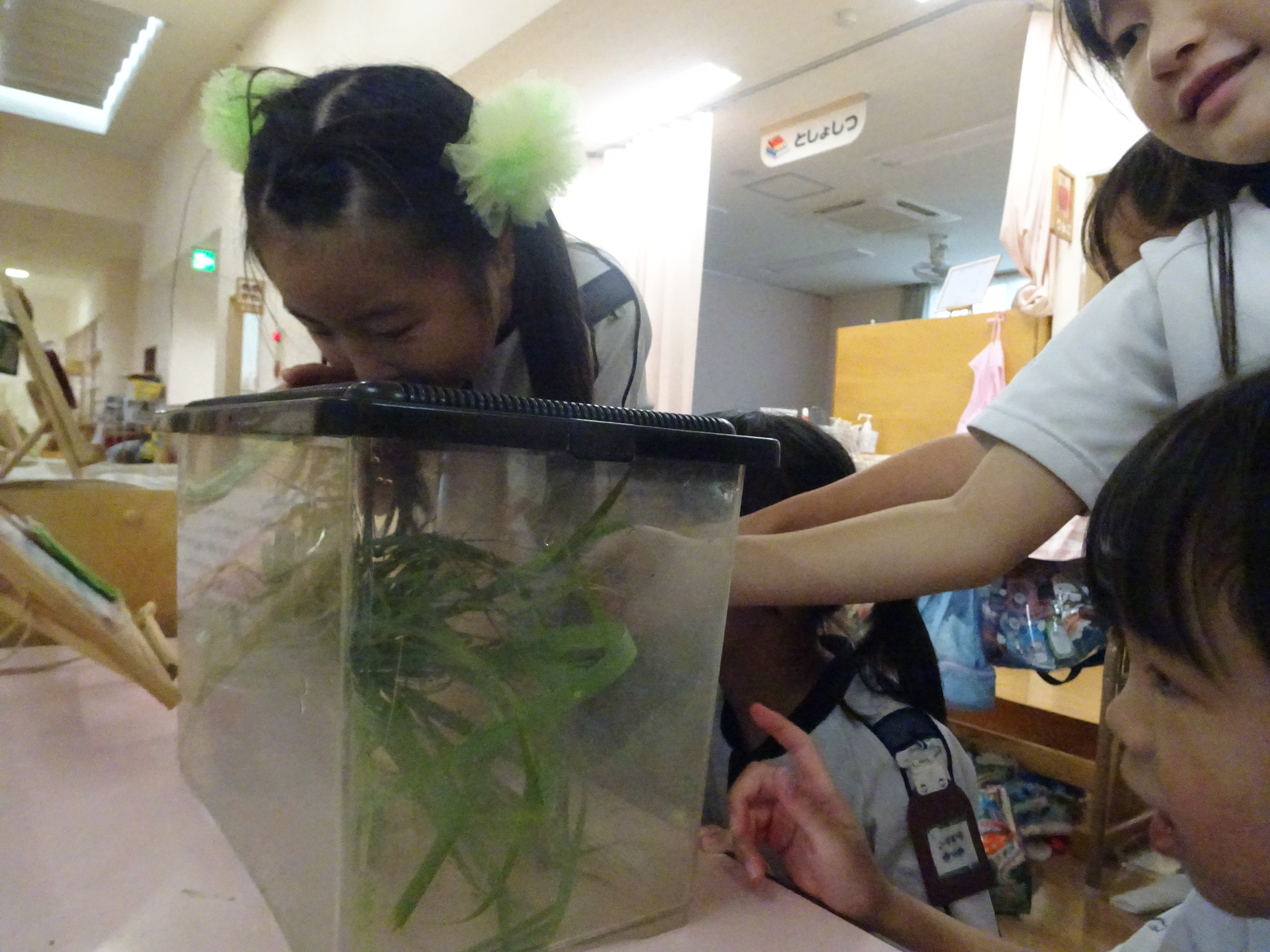 めろん組に新しいショウリョウバッタのお友達がやってきました♪ 名前はみんなで相談して「みどりくん」に...