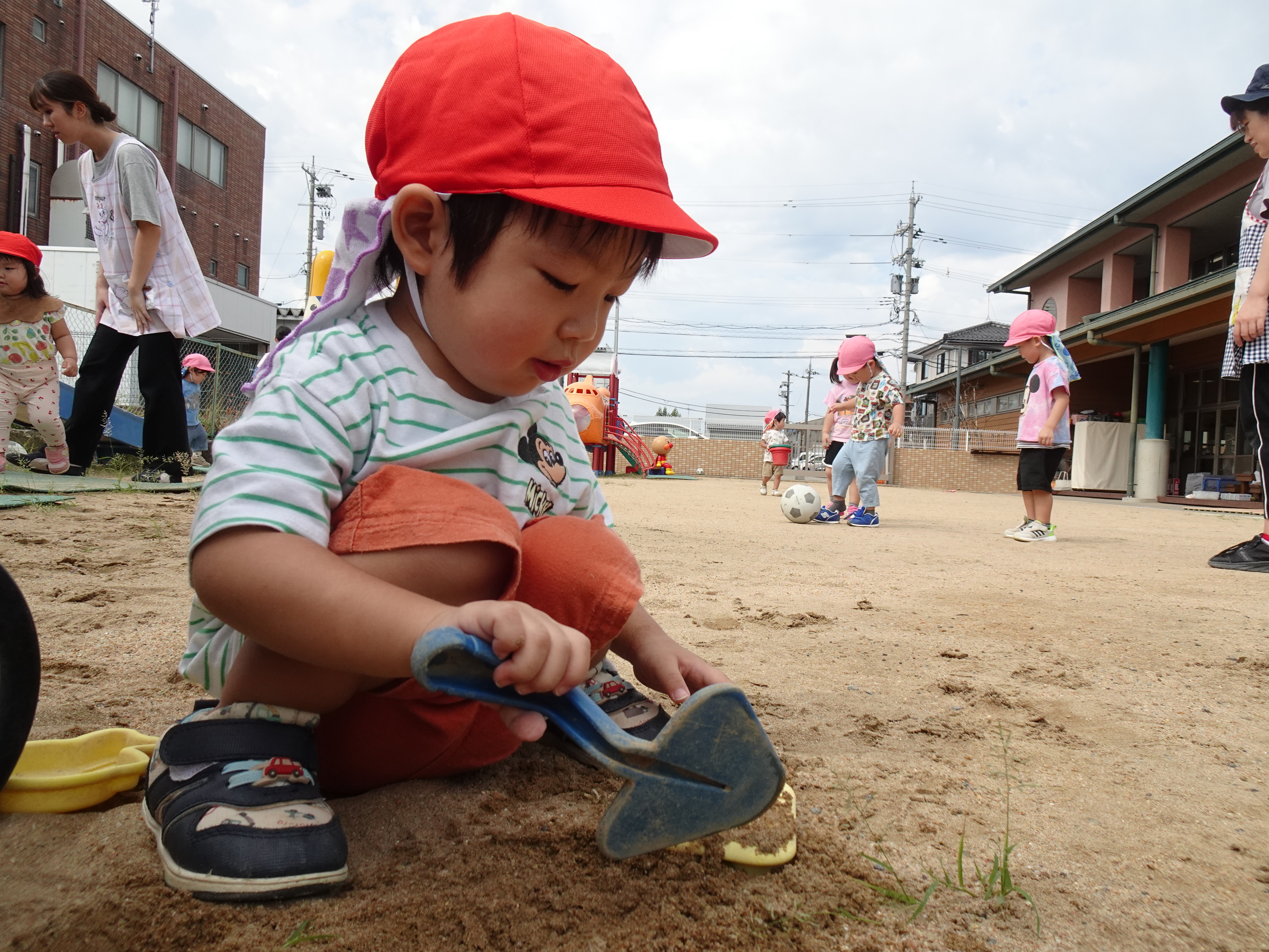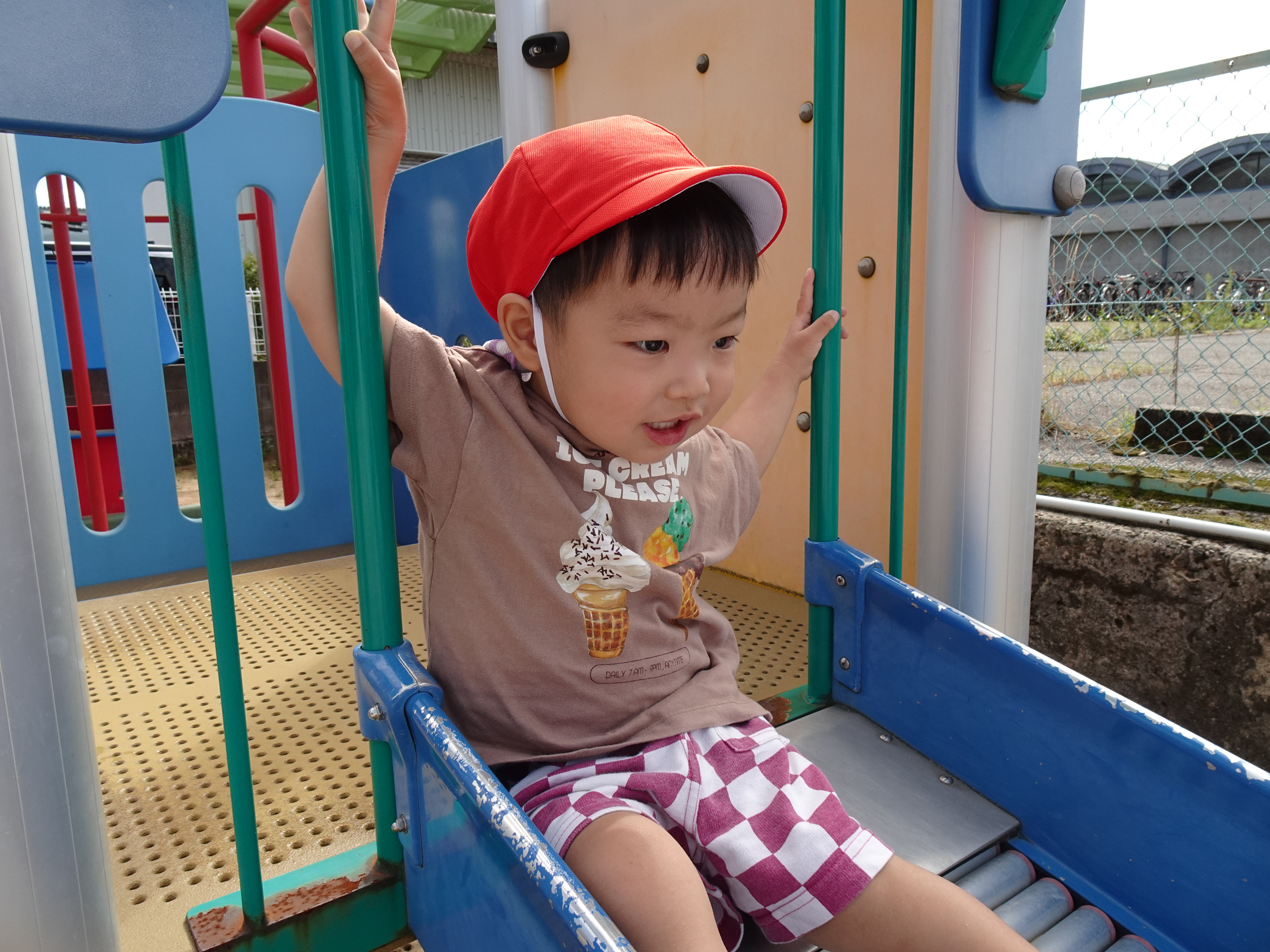 朝、すこーしだけ涼しかったのですこーしだけ園庭で遊んできました☀ Sちゃんは、はじめての園庭に少しド...