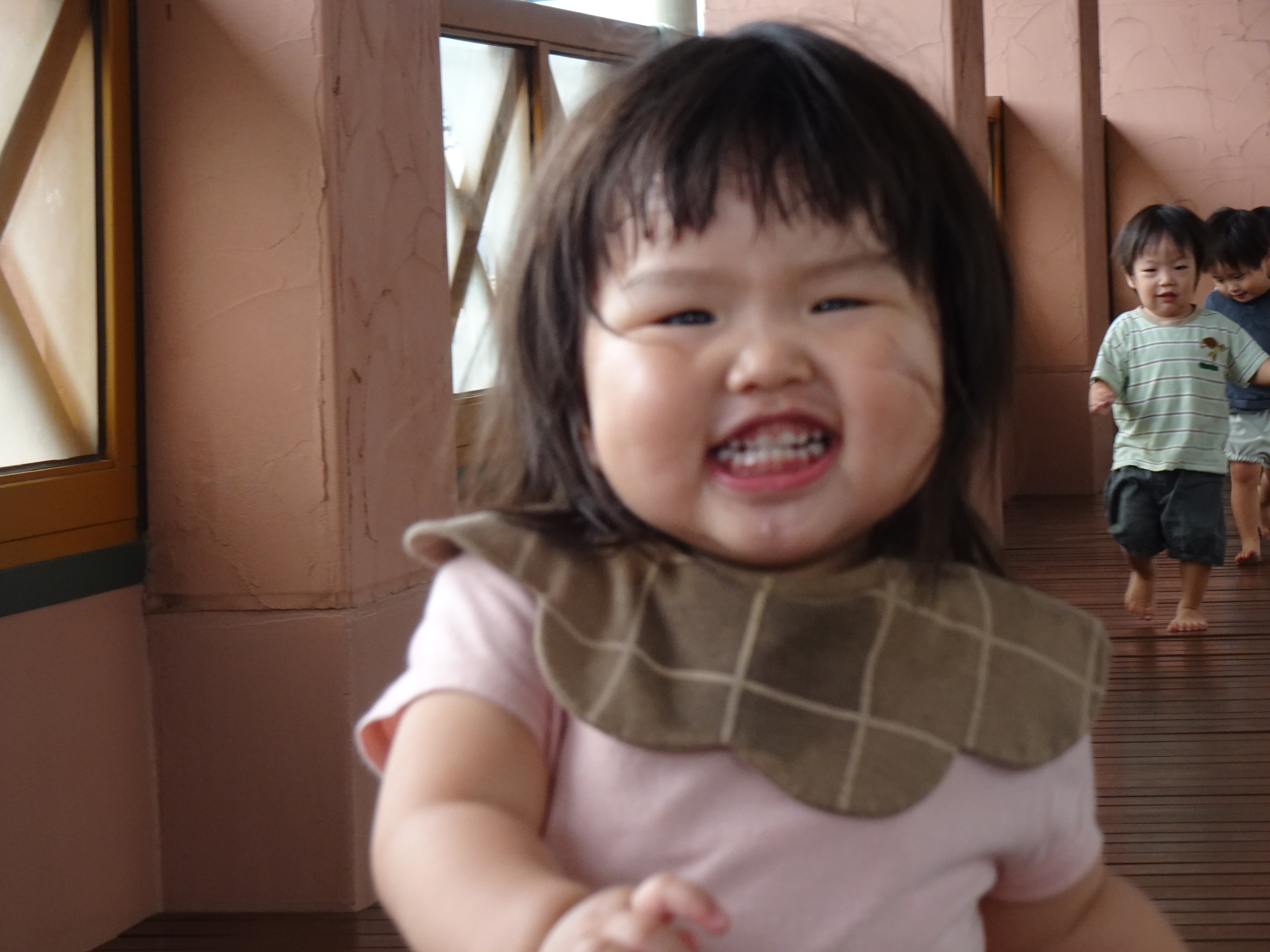 良いお天気に誘われてテラスでも体を動かして遊んできました! 「ハイハイでまてまてして~!」と保育者へ...