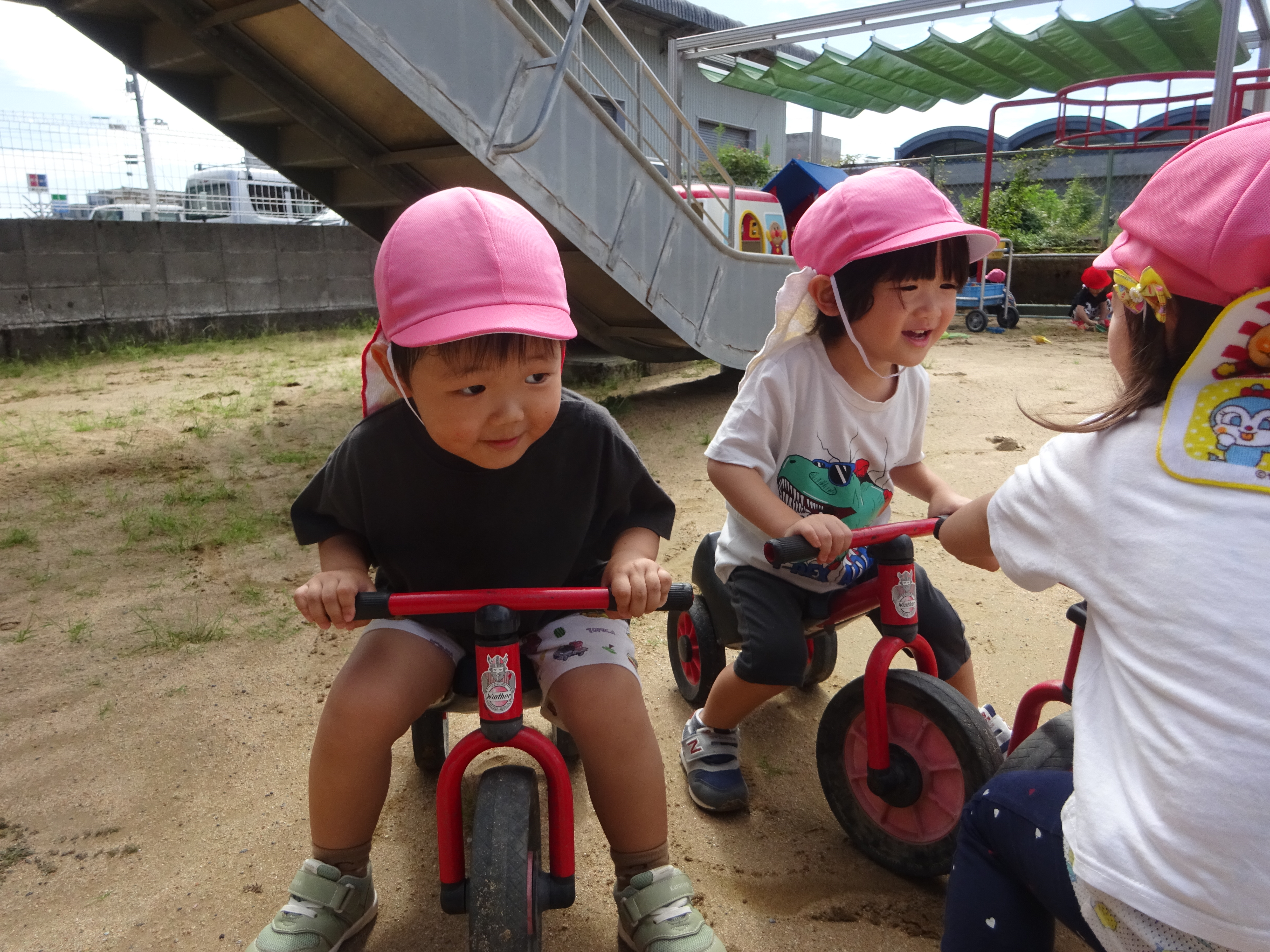 今日はお天気も良かったので園庭で遊びました^^ ミニバイクを出すとあちこち探検を楽しむもも組さん! ...