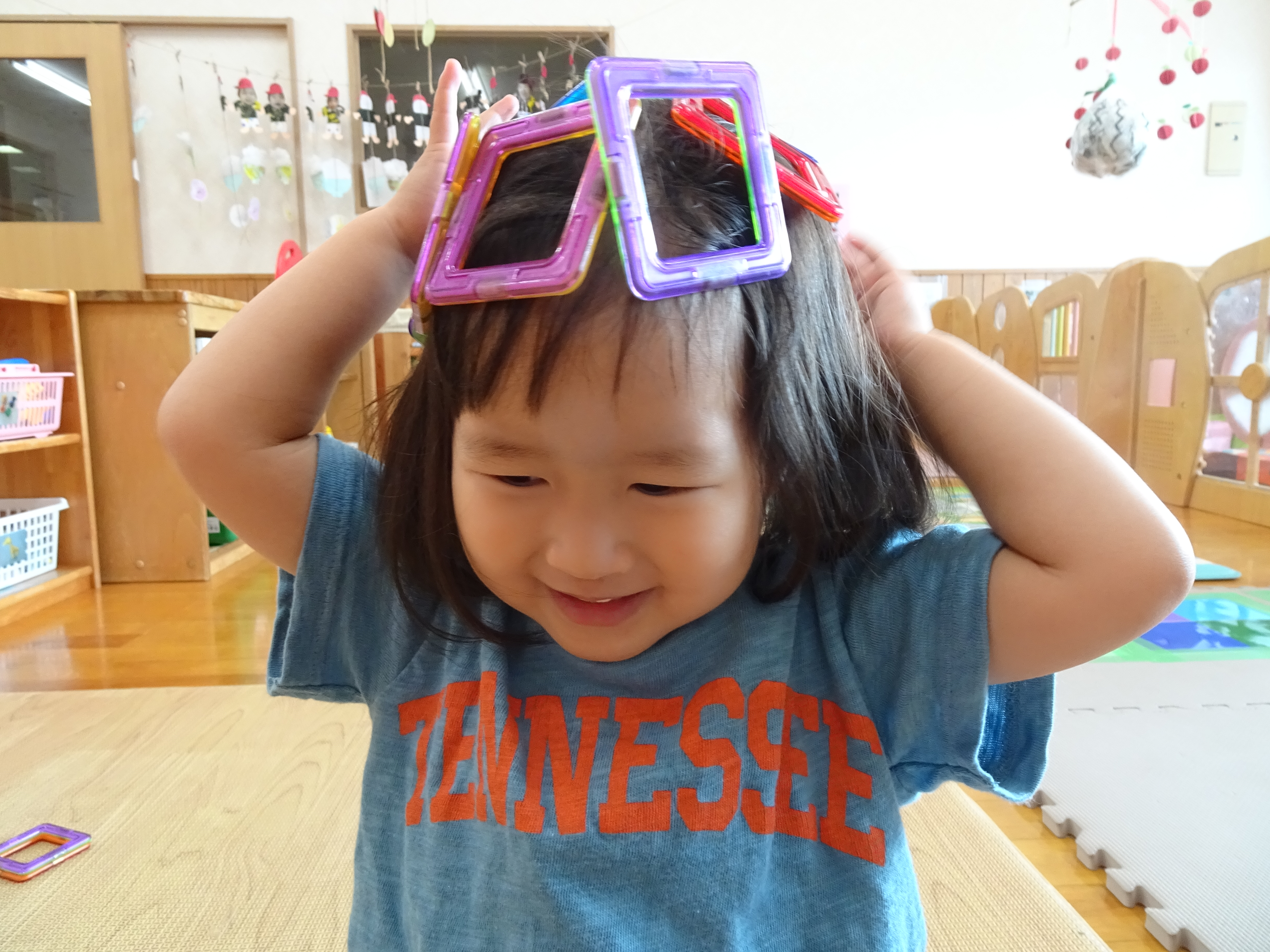りんごA組のお部屋にあるピタゴラスで遊びました。最近好きな子が多く、数を増やしてみました。 2つくっ...