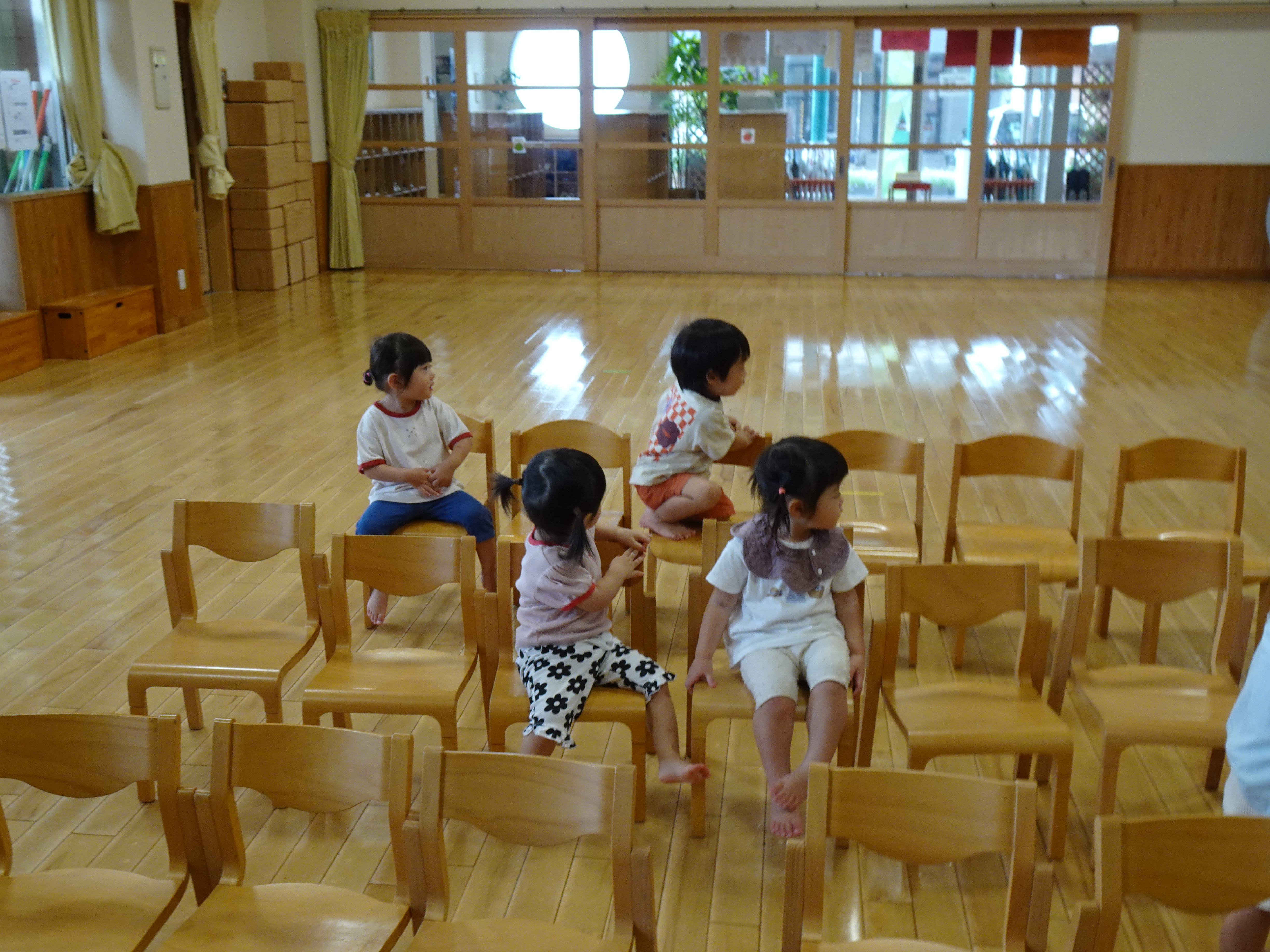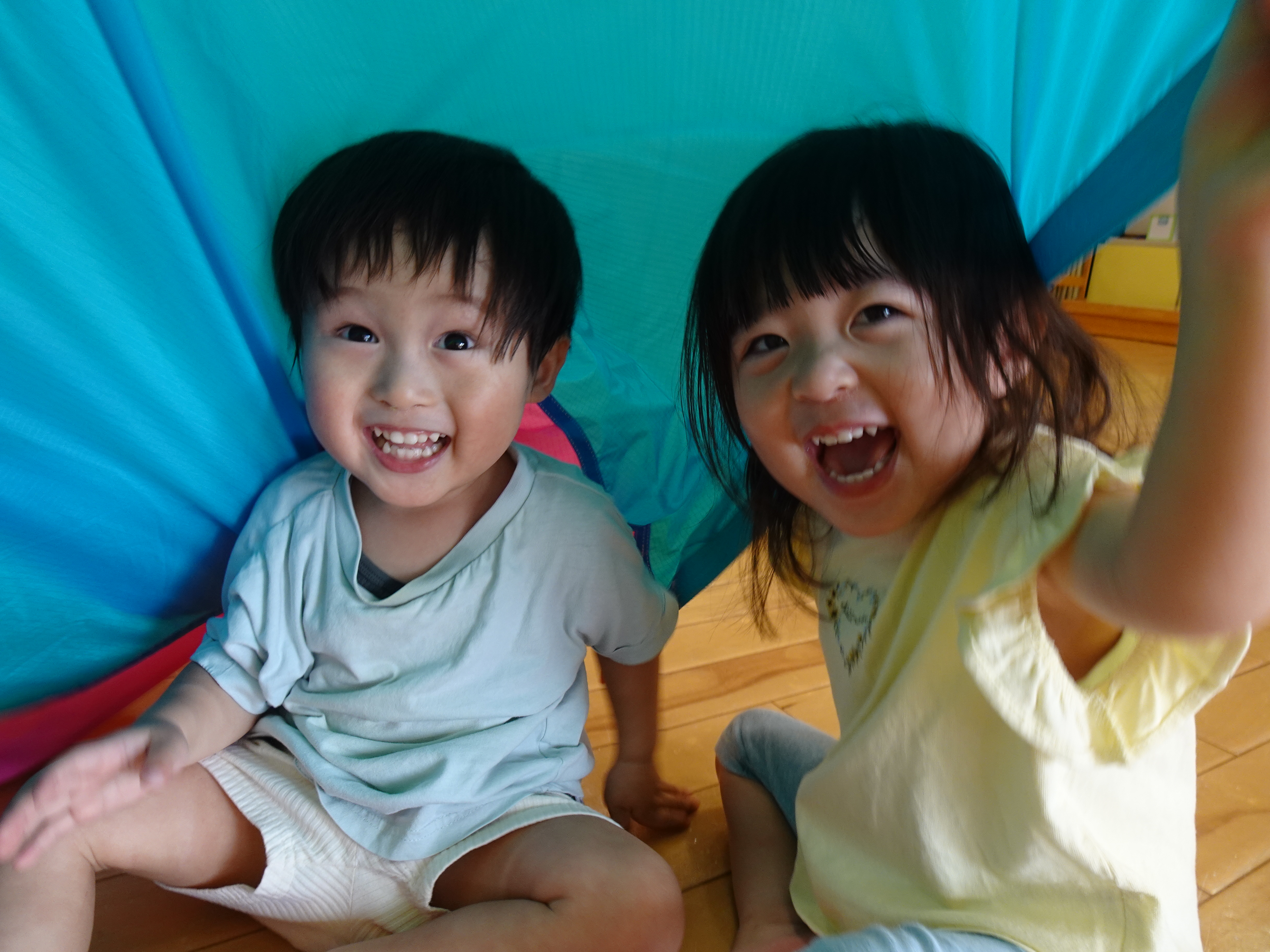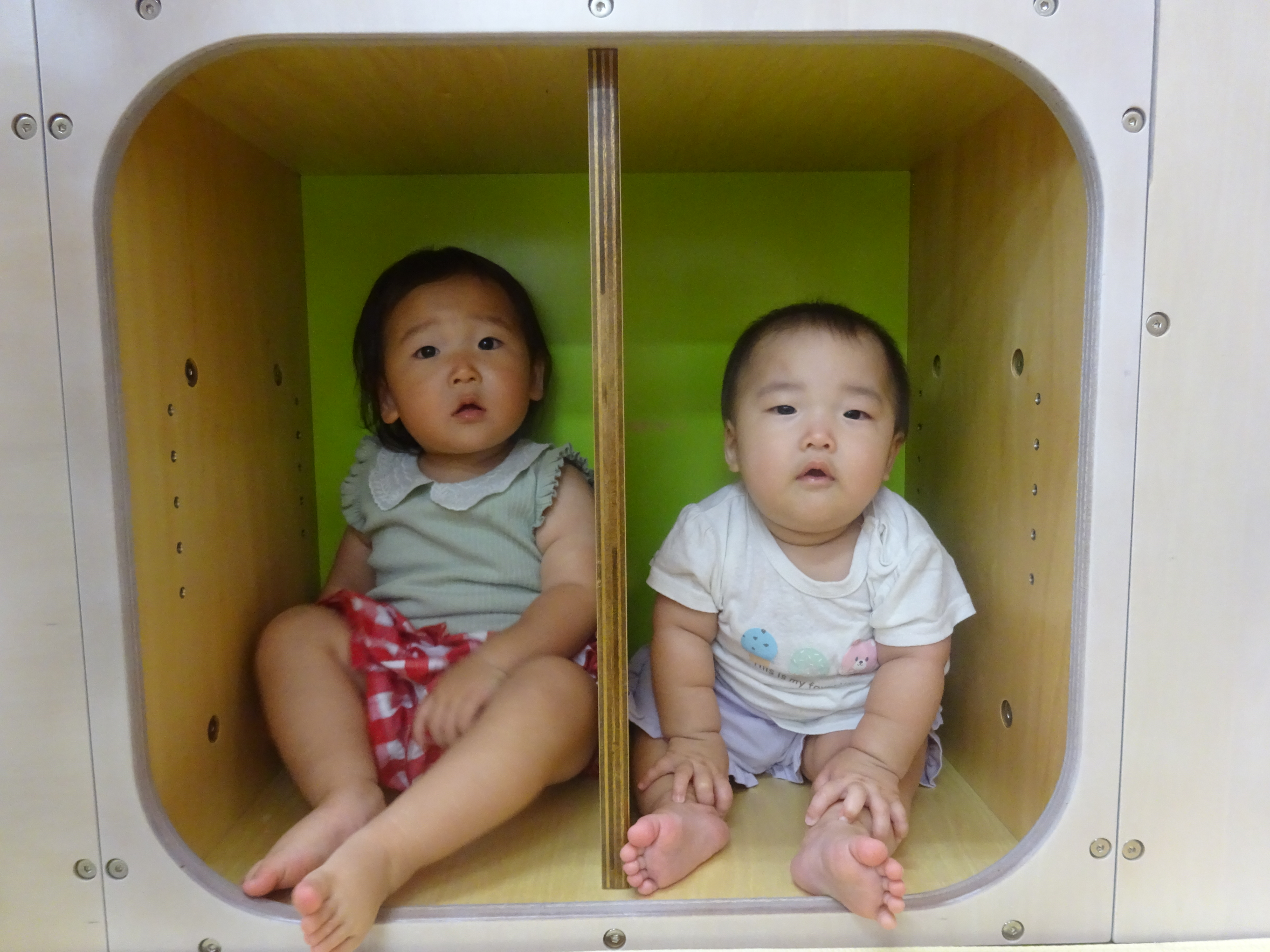 秘密のお部屋を発見したHちゃん、Mちゃん、Rくん! このお部屋は実はみんな大好き滑り台の下にあるお部...