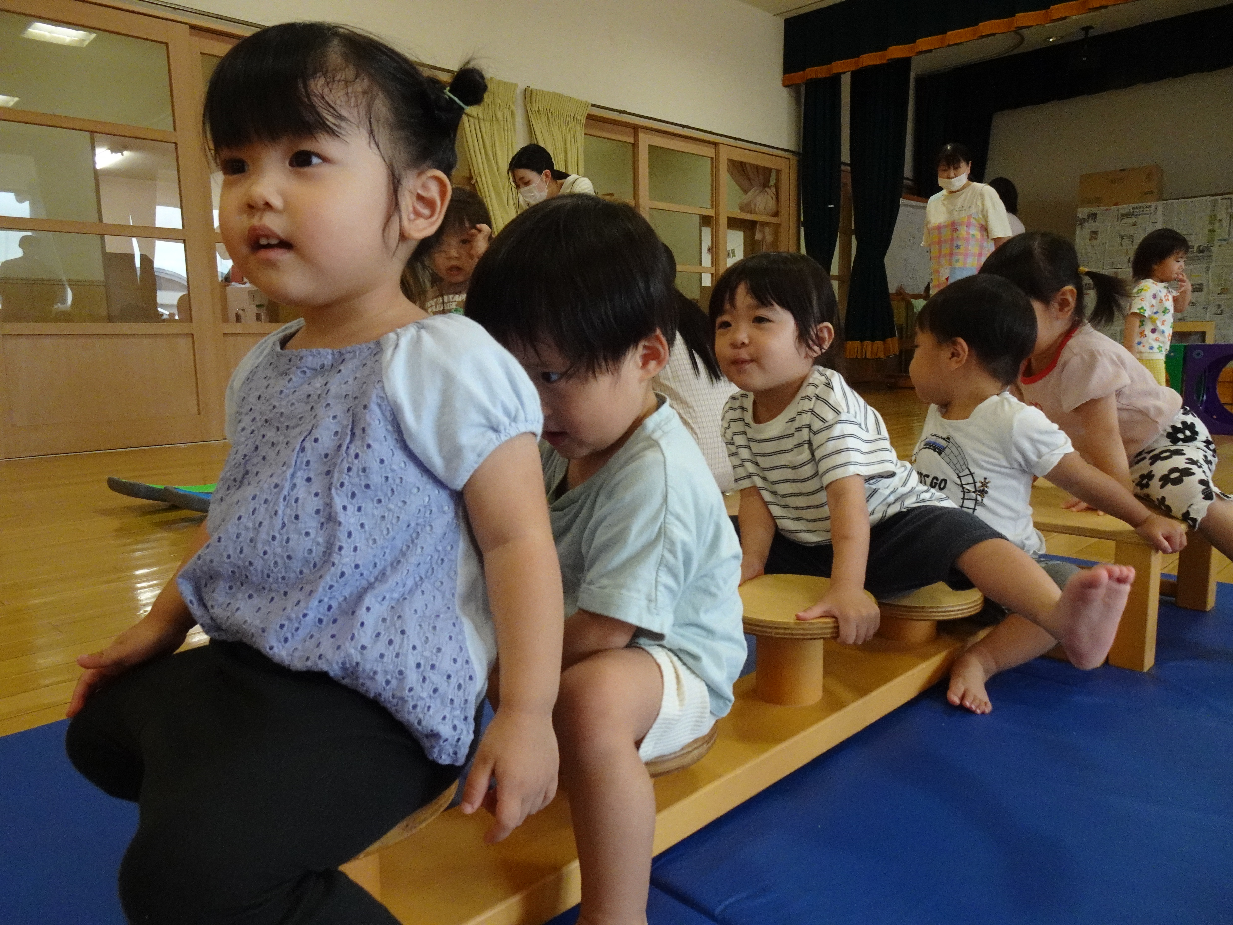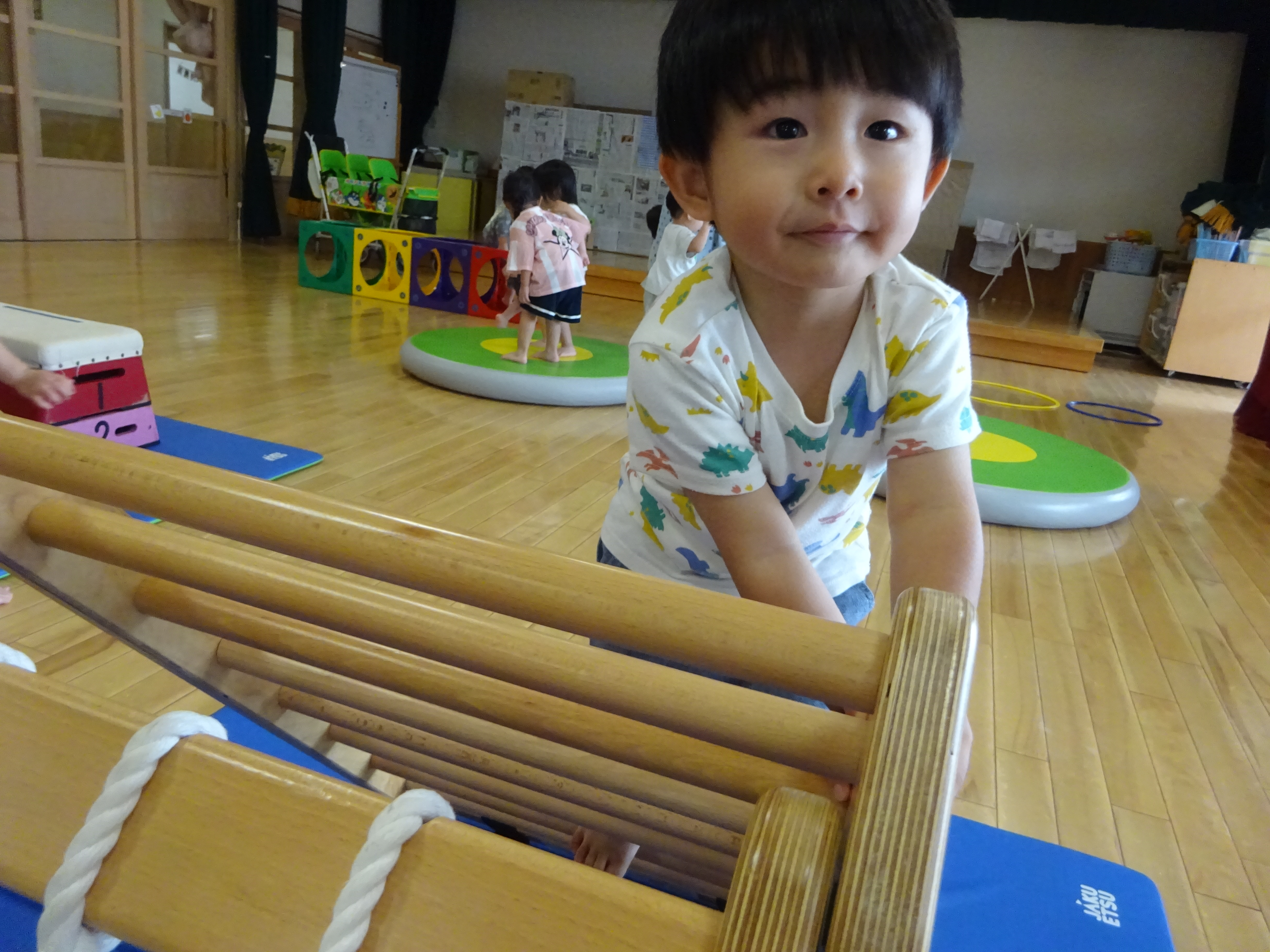 今日はホールでB組さんと一緒に体を動かして遊びました♬ トランポリンやゲームボックス、バランスボード...