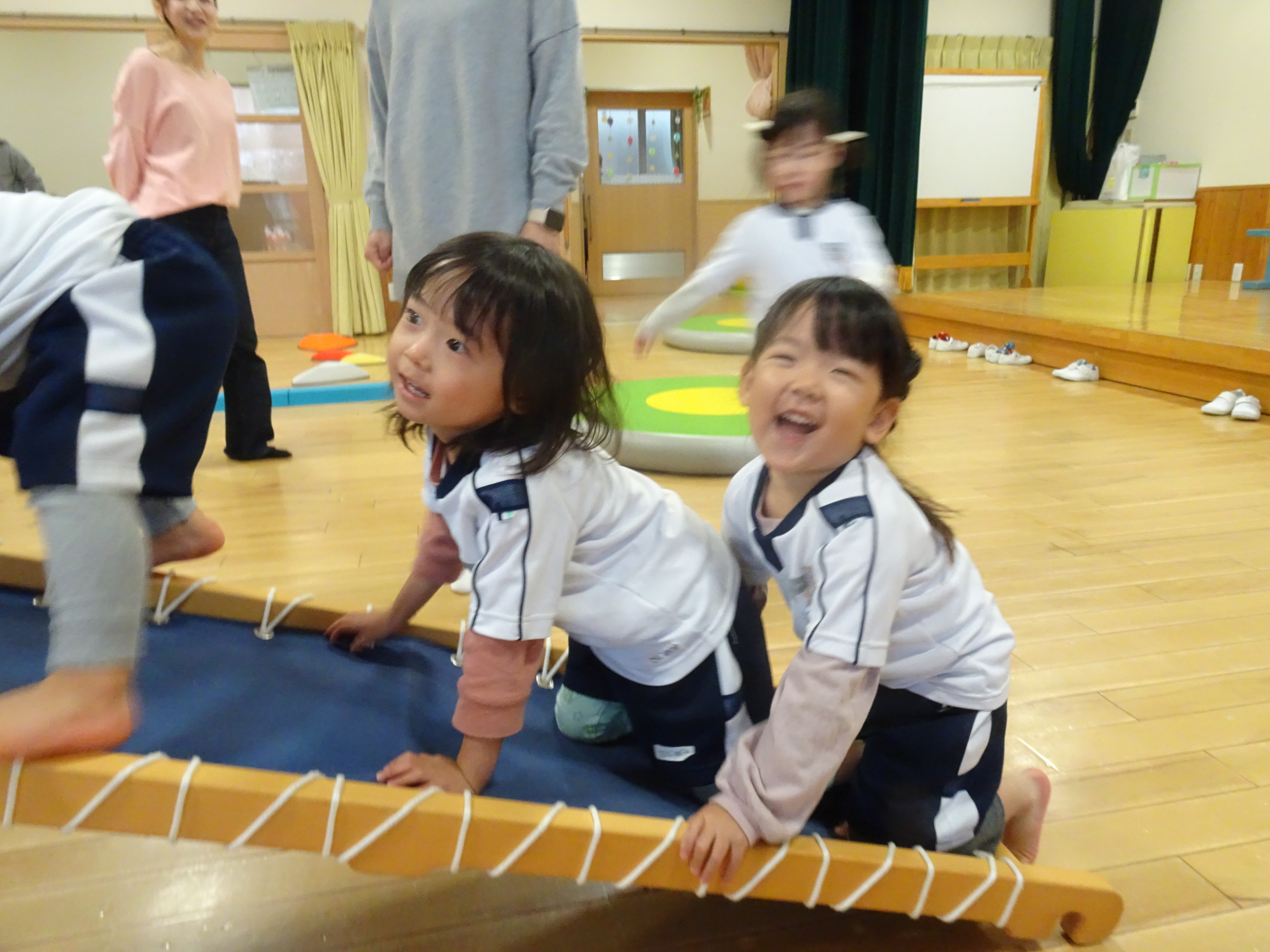 今日はみんなずっと楽しみにしていた親子遠足!! フィールドビンゴに体操教室でしている大繩や平均台を披...