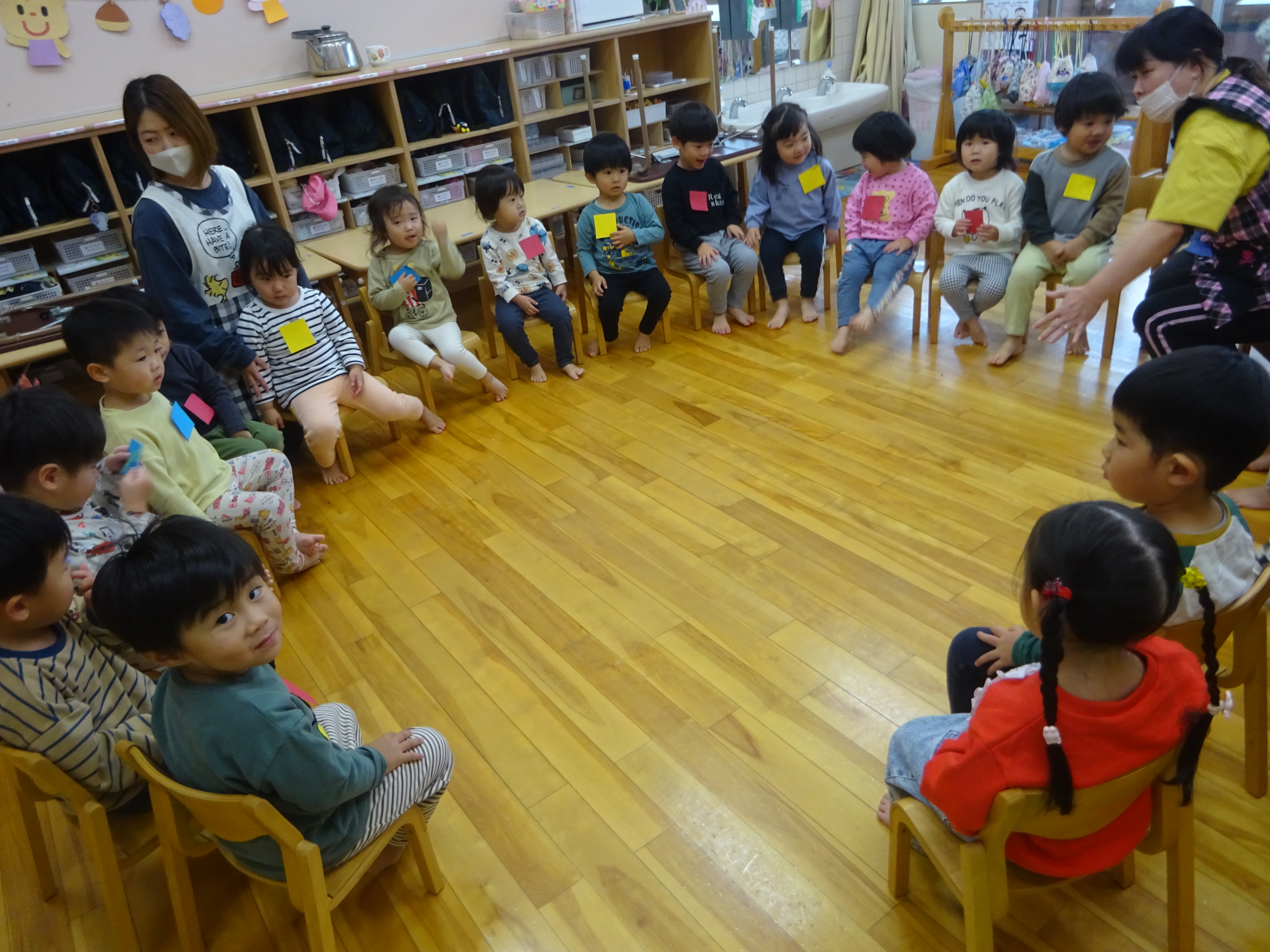 今日は初めてフルーツバスケットならぬ色バスケットをして遊びましたよ!自分たちのグループの色が分かって...