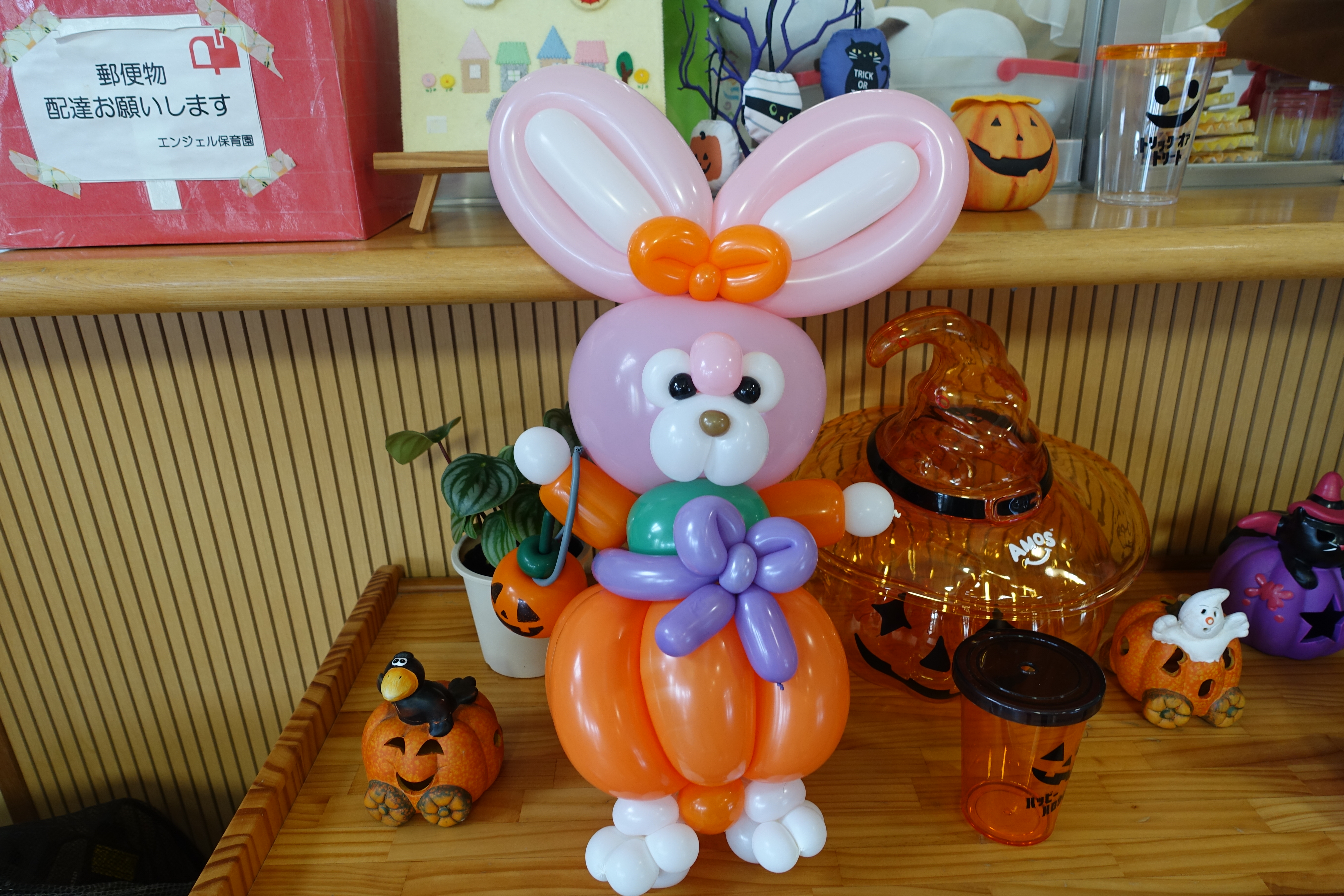 卒園児の保護者のWさんがハロウィンウサギを持って来てくれました! かぼちゃのバッグがとってもかわいい...