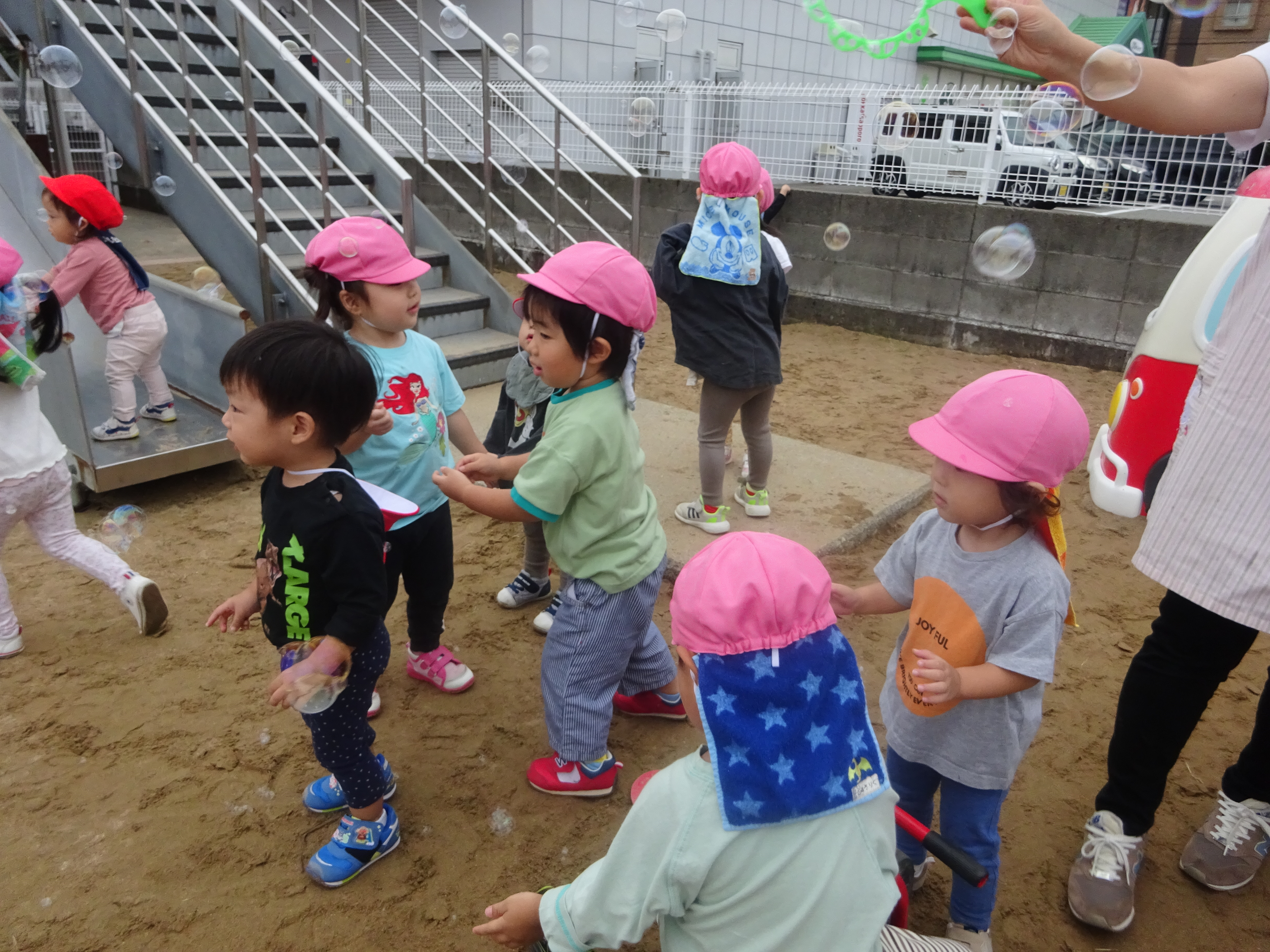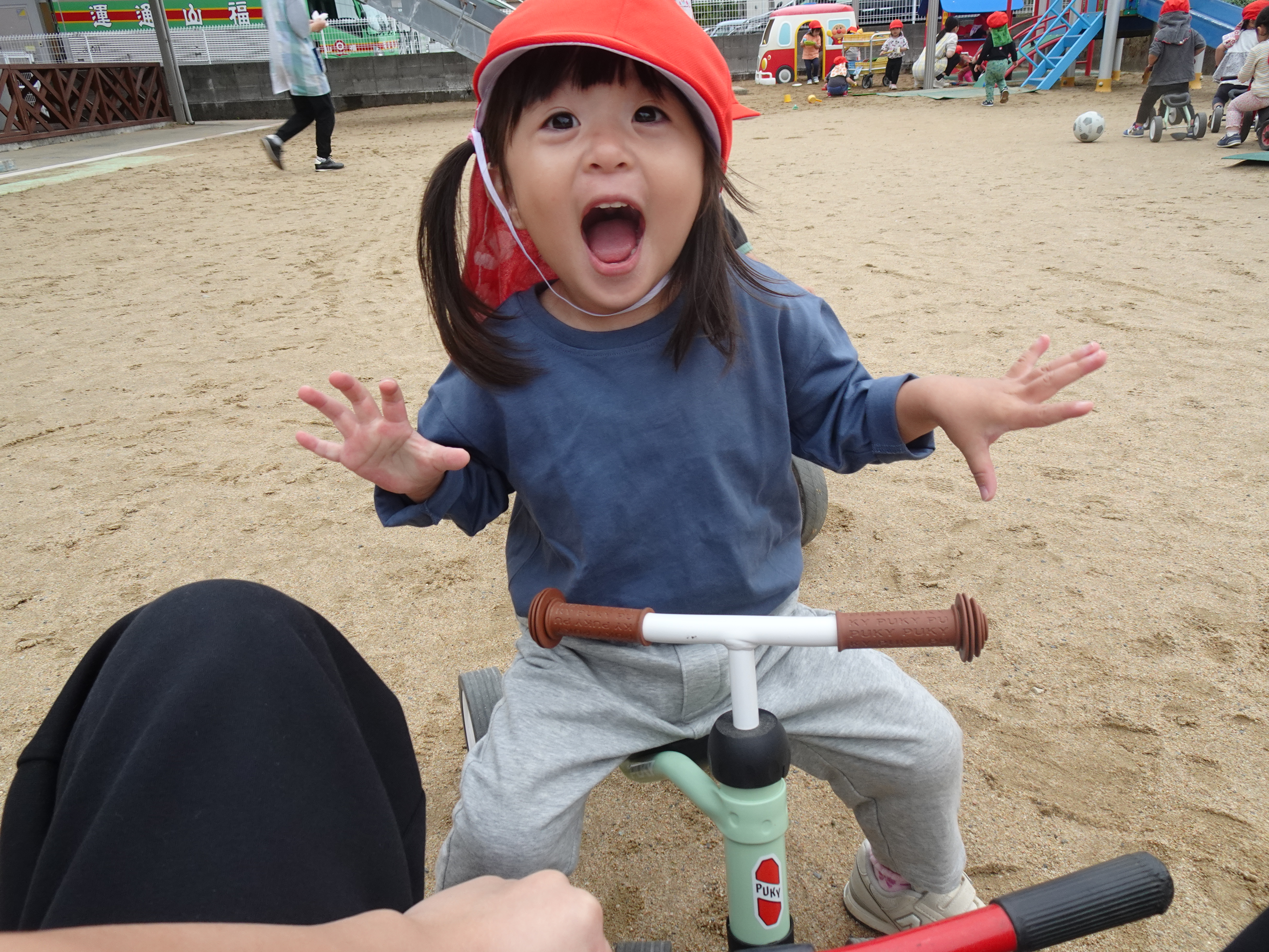 今日は園庭に出て遊びましたよ!雨が降らないことを祈りながらたくさん身体を動かしていたもも組さんでした...