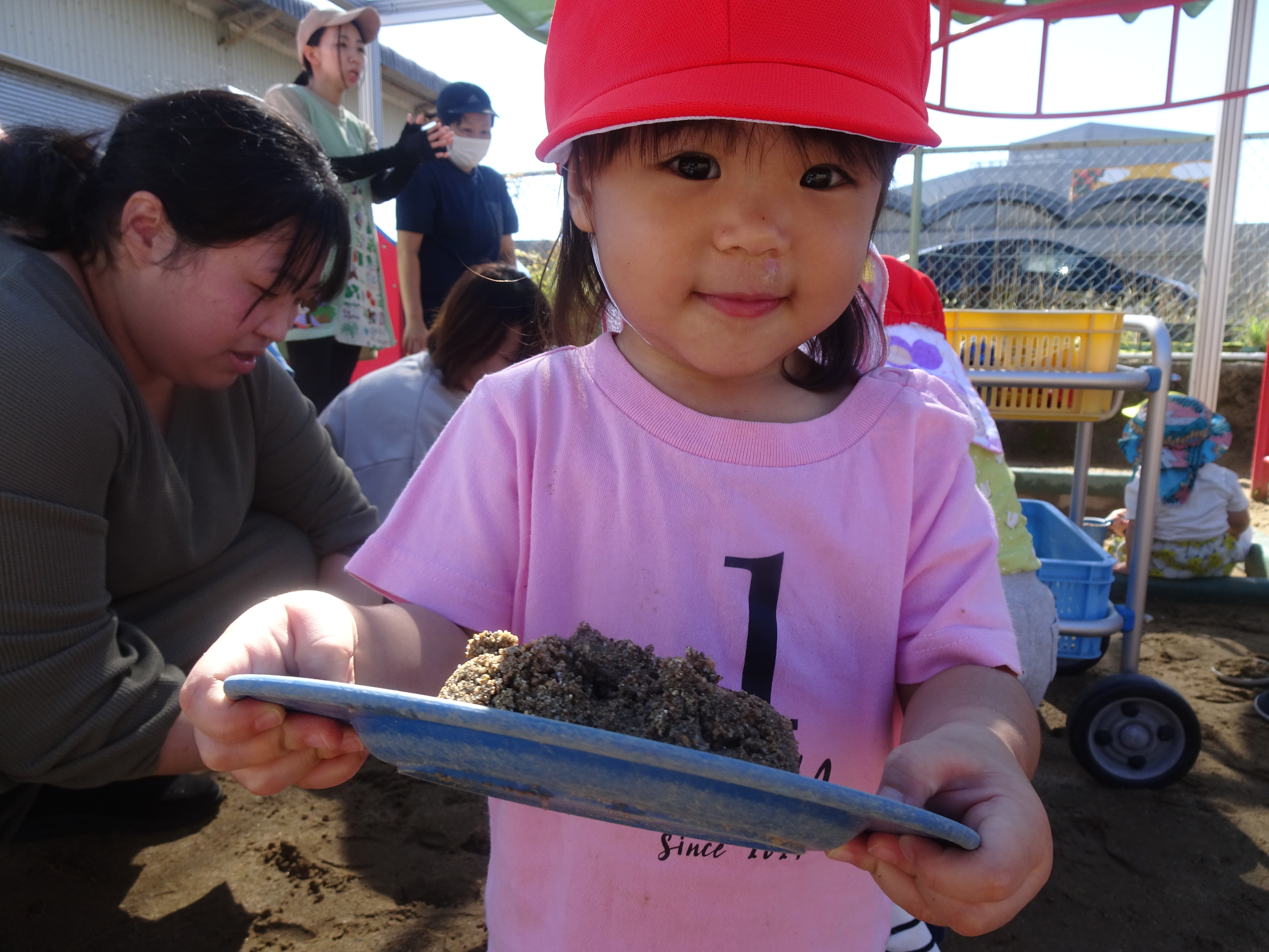 今日は園庭で遊びました☀ お砂遊びが大好きなりんごさん!今日はお砂場のお隣のお家でお店屋さんごっこを...
