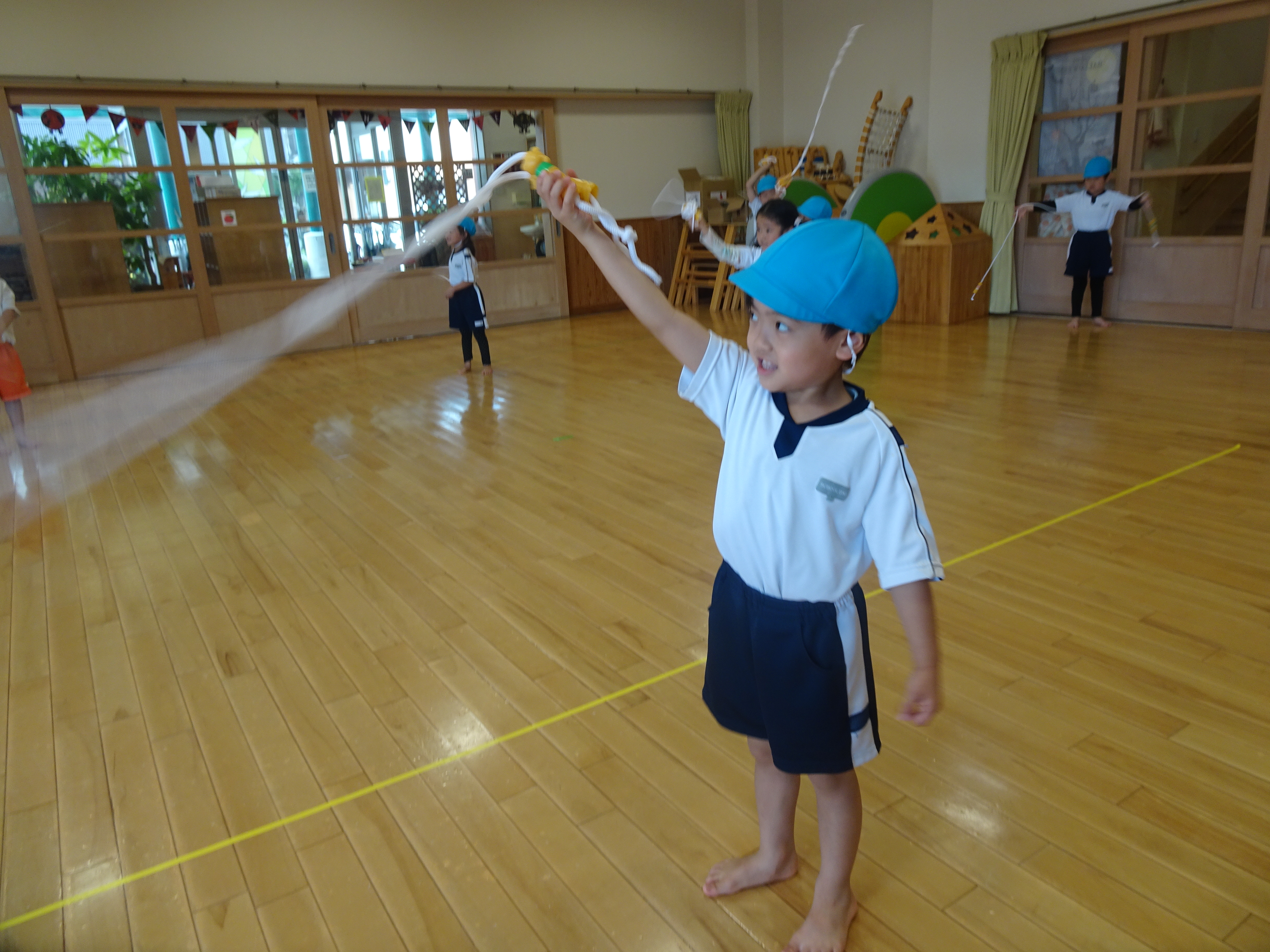 先週の体操教室からは大繩ではなく自分の縄跳び(短縄)を使った活動が始まりました! 縄を...