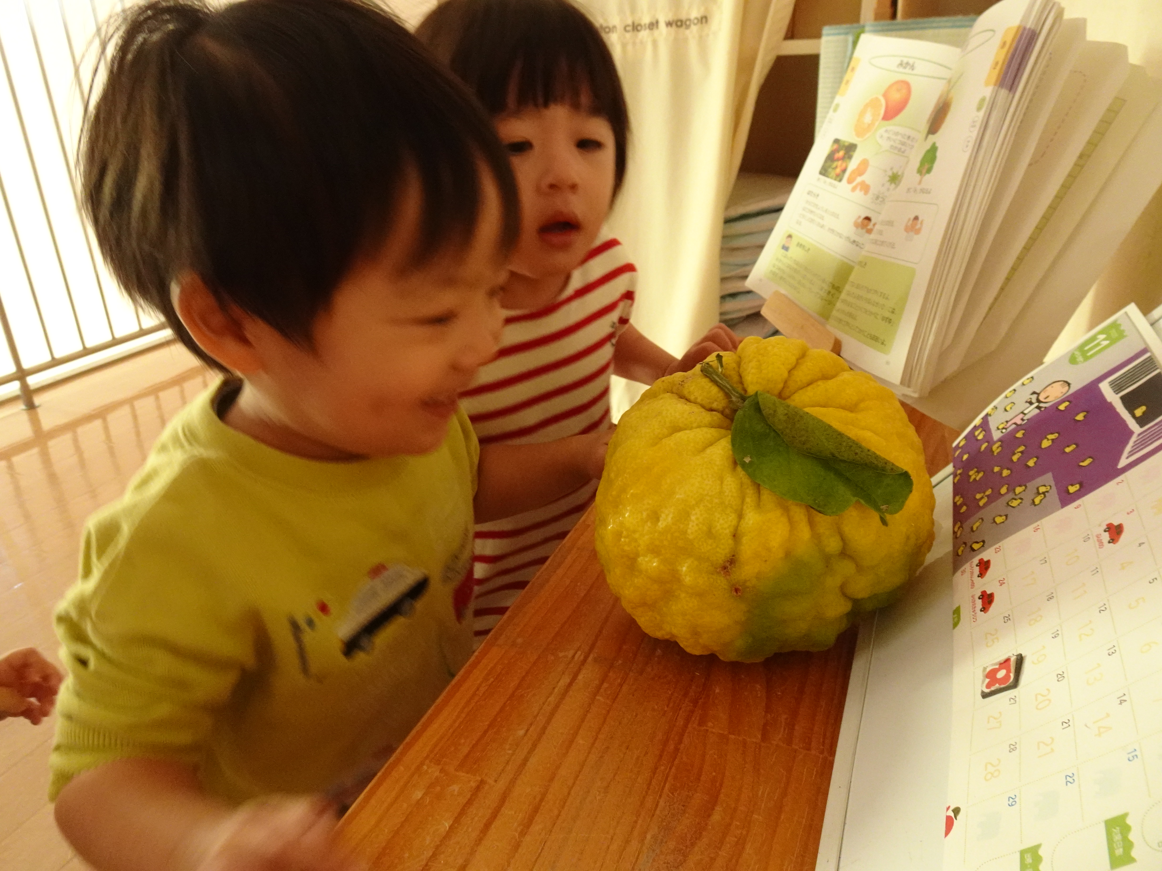 お外はびちゃびちゃ☔だったのでお部屋や園内でゆったりと過ごしました^^ 園内散歩へ出かけるとおに柚子...