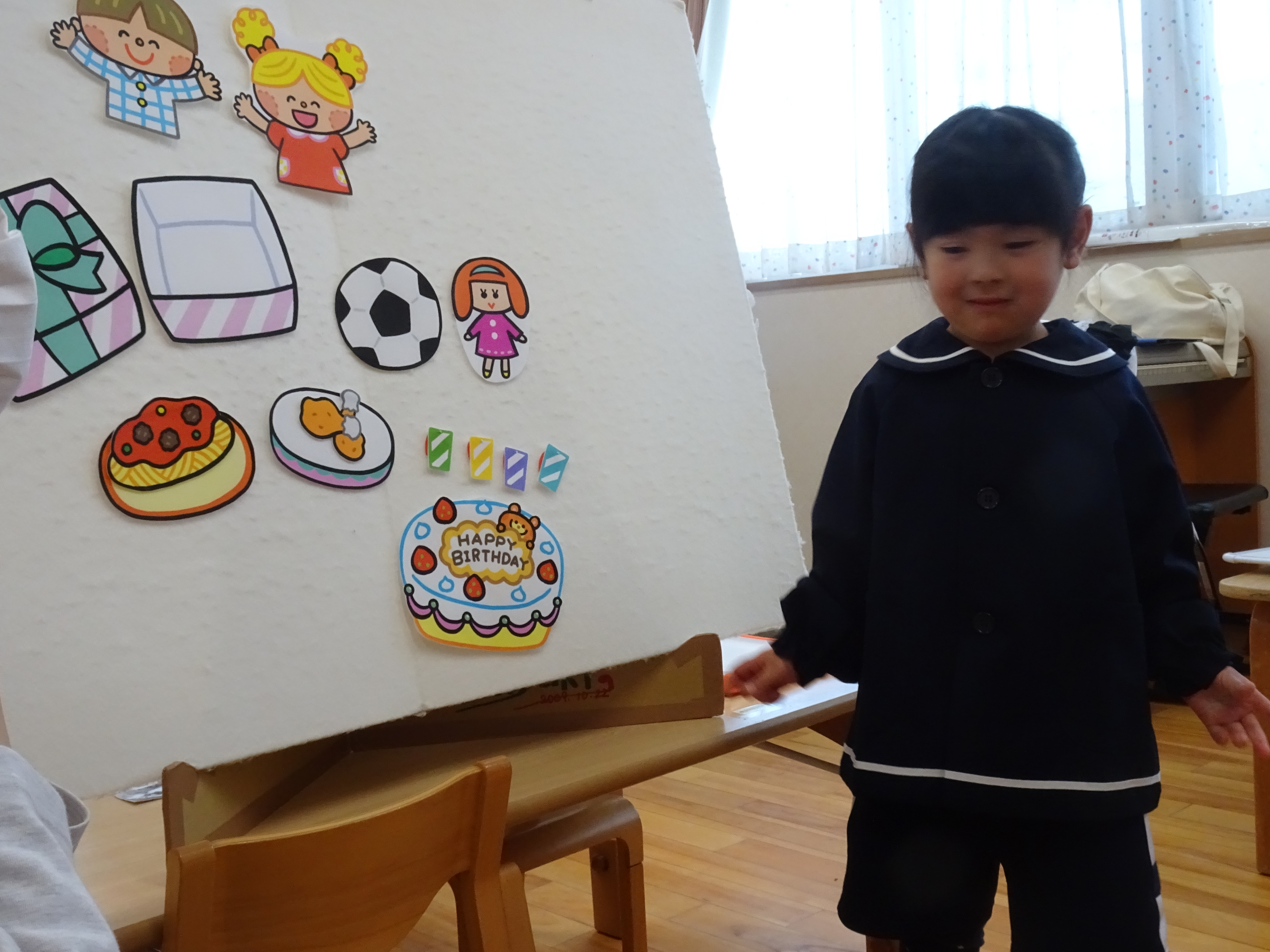 今日は11月30日にお誕生日を迎えたAちゃんのお誕生会をしました Aちゃんに前に出てインタビューに答...