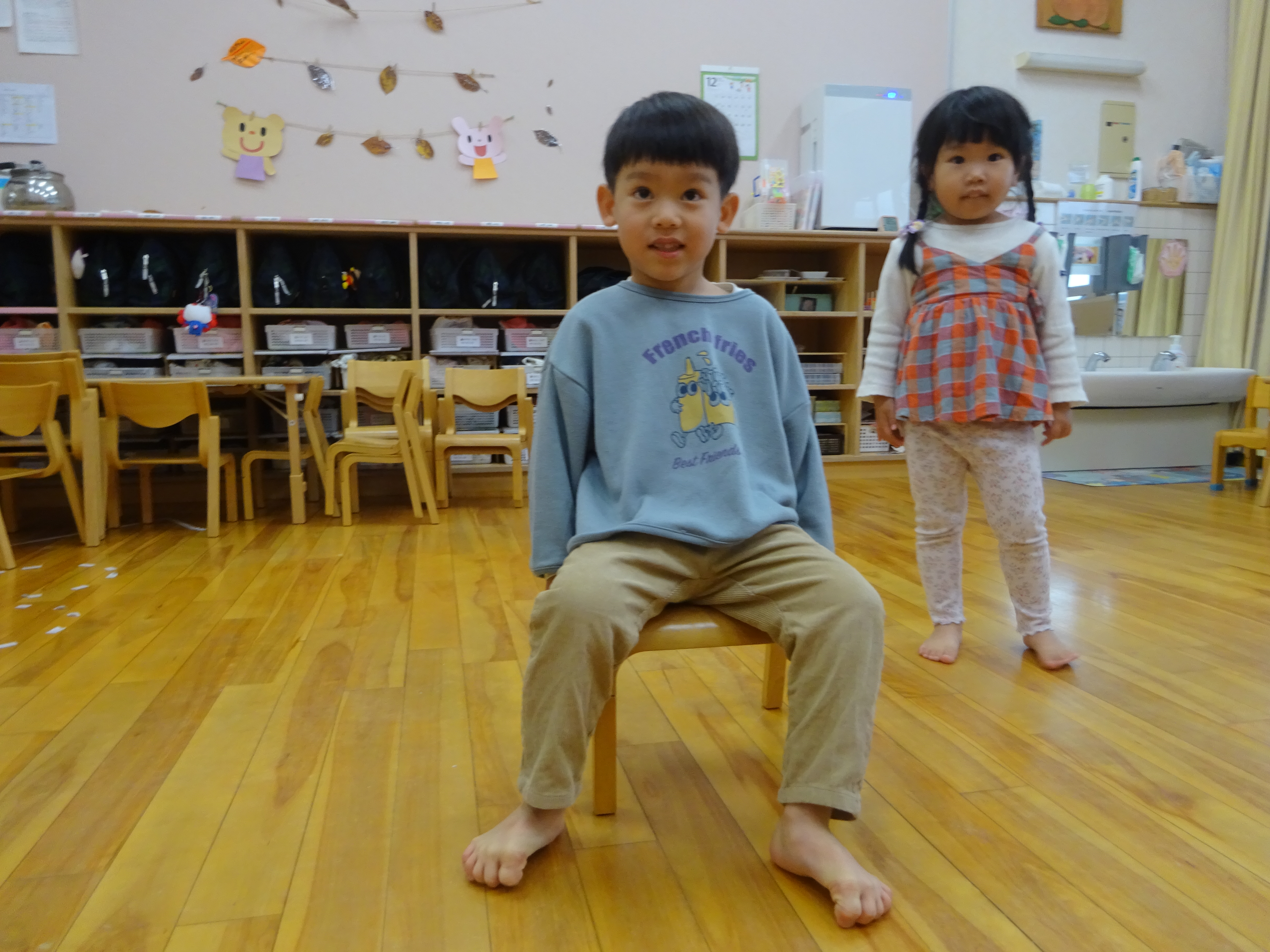 お部屋で椅子取りゲームをしました!もう何度も楽しんできているので、並んでいる椅子の形状...