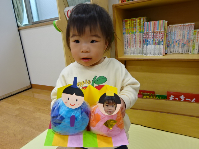 今日は3月3日のひなまつりに向けてお雛様の工作をしました。 お内裏様もしくはお雛様の顔がお子さんの写...