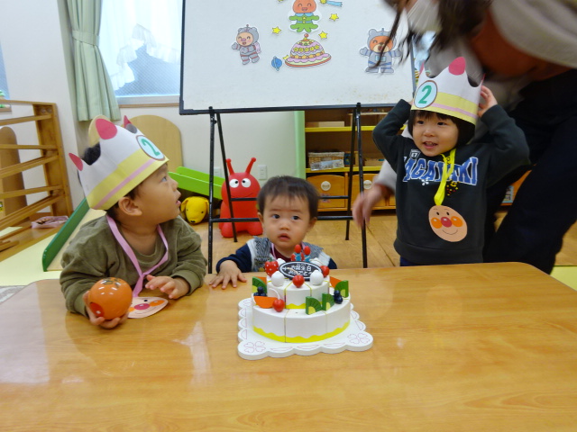 今日はお話しランド! いろいろなお話しを楽しんでもらう会です。 毎月一緒にお誕生会もしています。主役...