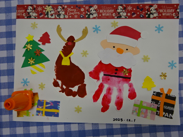 今日から12月ですね。今年もはや残り1か月となりました。 今日はクリスマスに向けた手型足型アート作り...