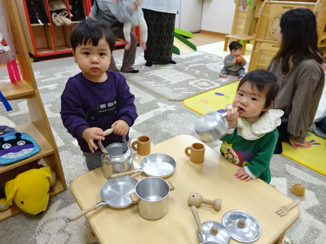 キッズサークルの日です。 お友だちがお部屋の入ってくるとにっこり! 仲良しです❤ お部屋で運動遊びを...
