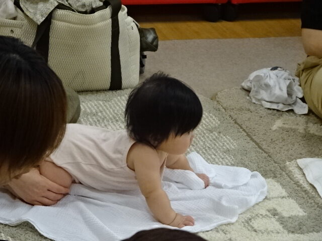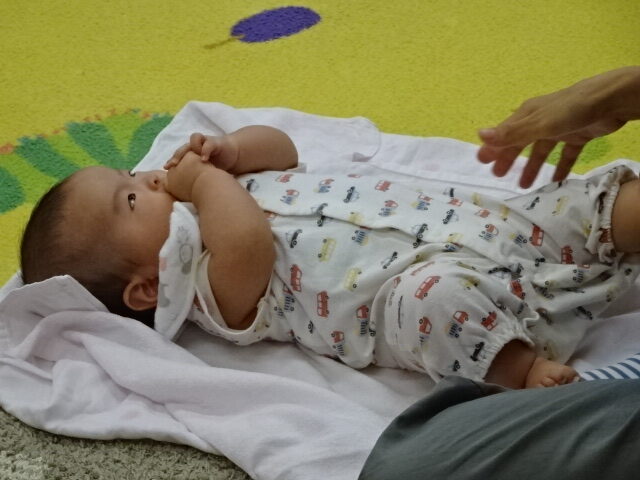 赤ちゃんの好きな体形でマッサージを進めていましたよ。