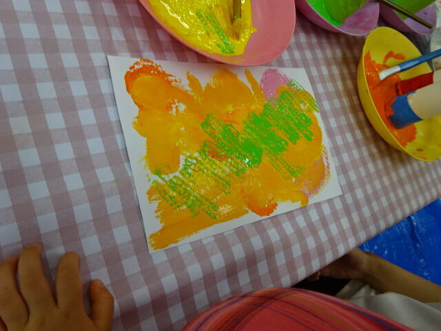 今日は絵の具遊びをしました。