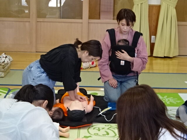 日本赤十字社 石川支部より講師を迎え、育児講座で「心肺蘇生法」を学びました。