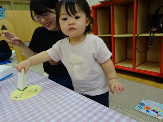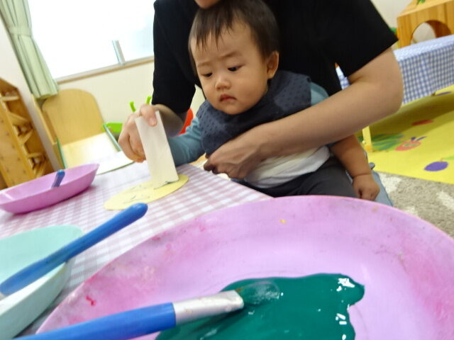 最初は見ているだけだったお友だちも慣れてくるとおうちの人と一緒に上手にスタンピングしていましたよ。