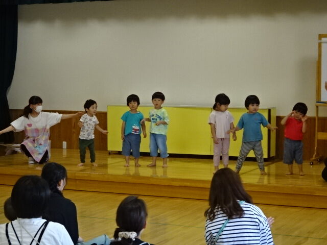 まずは、もも組の歌、みかん・ばなな組の体操を見ました。かわいい園児の姿に癒されました♡