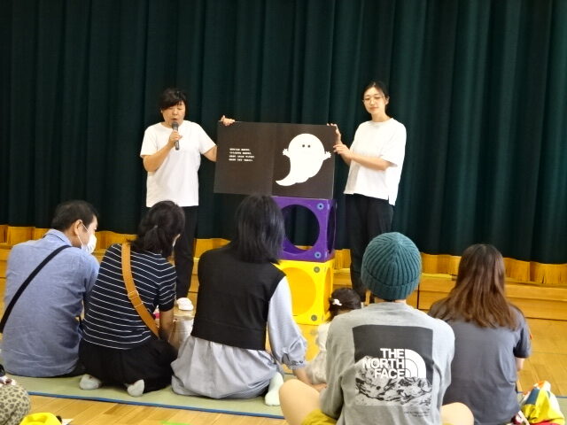 次は、絵本を見ました。次々と変わるおばけの姿が面白かったですね。