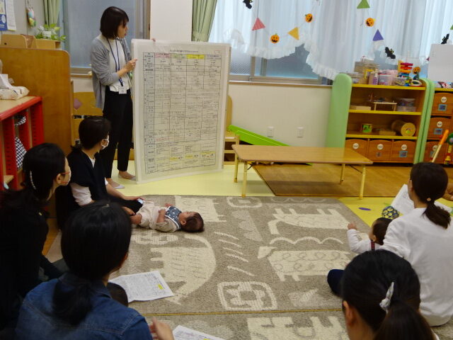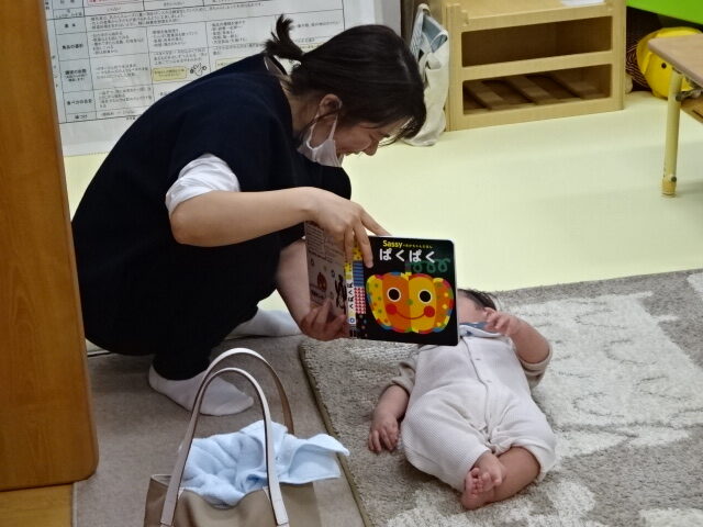離乳食講座終了後「ぱくぱく」の絵本を読み聞かせしていましたよ。食べるのが大好きになるかな?楽しみですね。