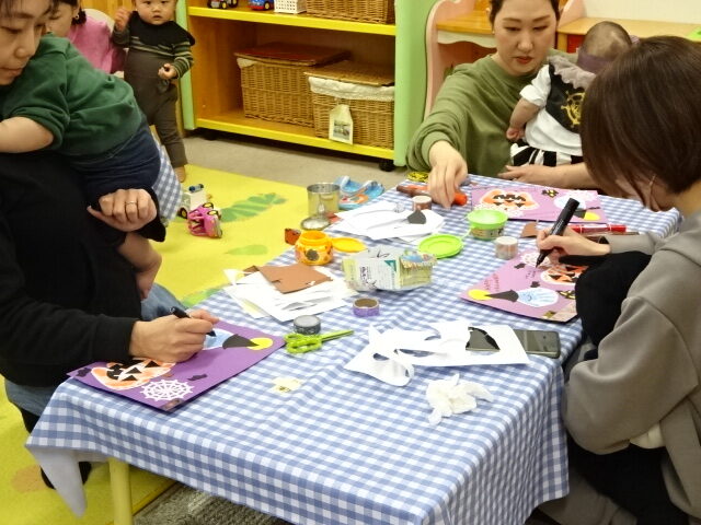 のり付けやお絵描きなど親子で一緒に楽しむ様子も見られました(#^^#)