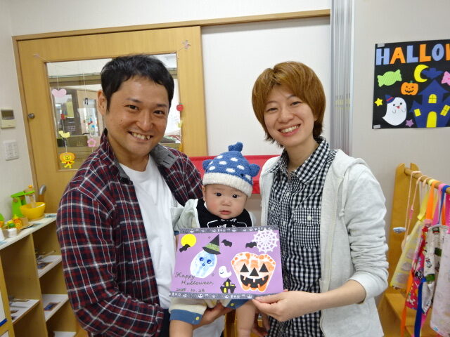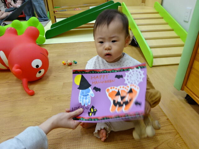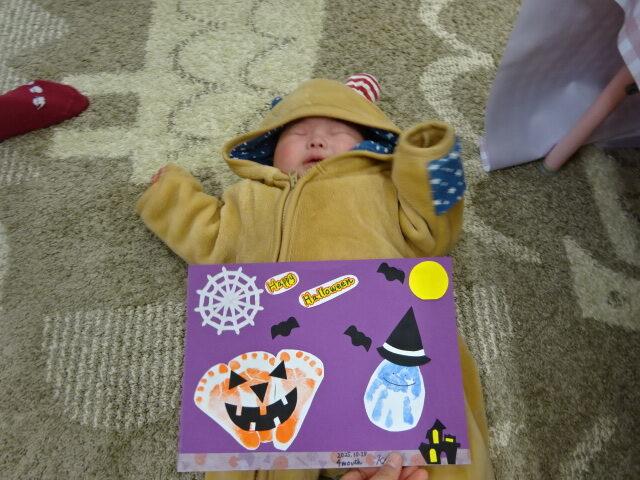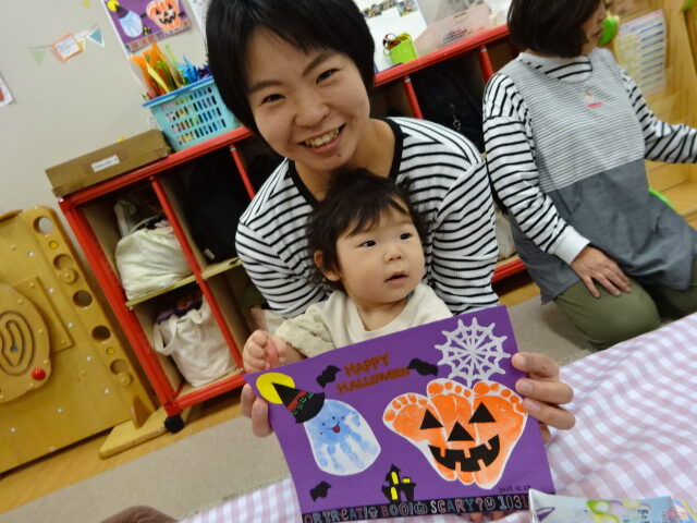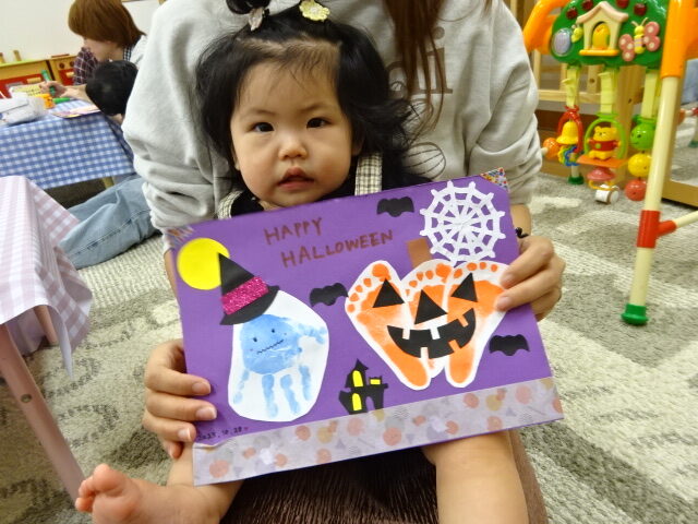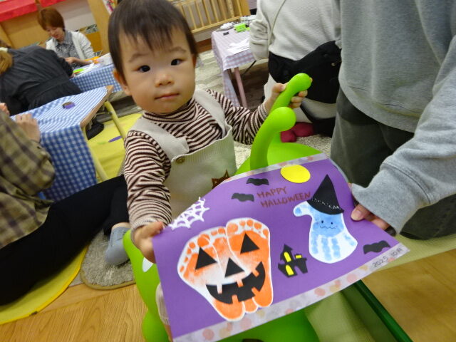 今日はハロウィンバージョンの手形・足形を使った作品作りをしました。