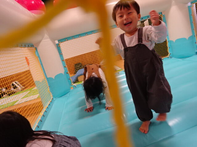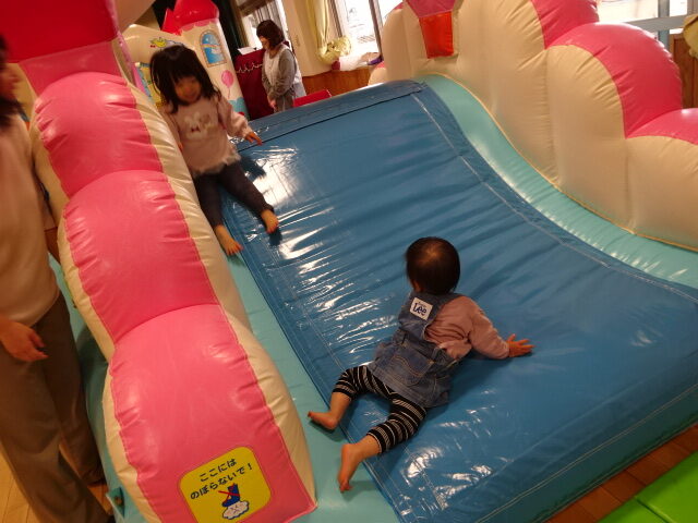 大きなふわふわの滑り台やトランポリンなどいろいろな遊具が設定されていました。
