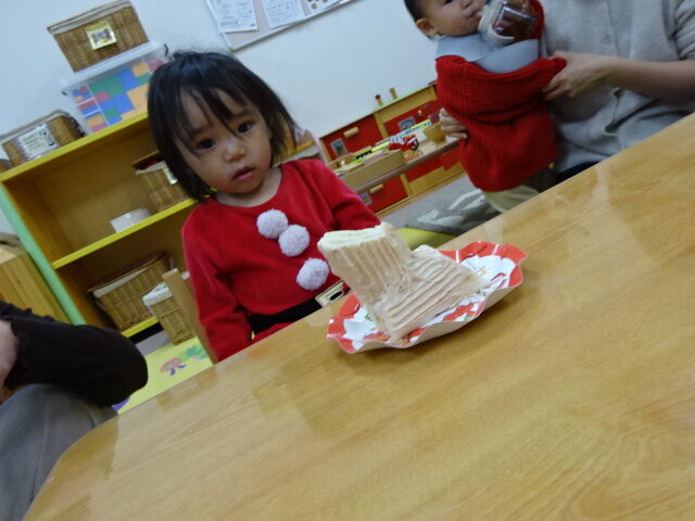 クリスマスっぽいお洋服やサンタさんの衣装を着てくる子もいて、楽しいクリスマス会の様子が伝わってきました♪