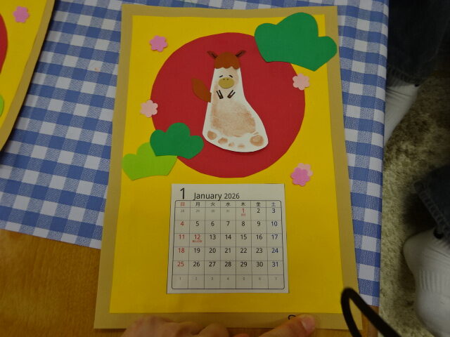 来月のカレンダーと馬のまわりに装飾をして完成!