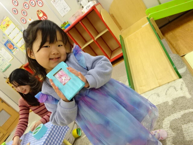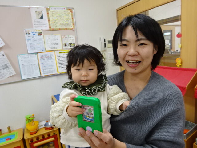 出来た作品を満足そうに触ったり電話する真似をしたりして楽しんでいました♪