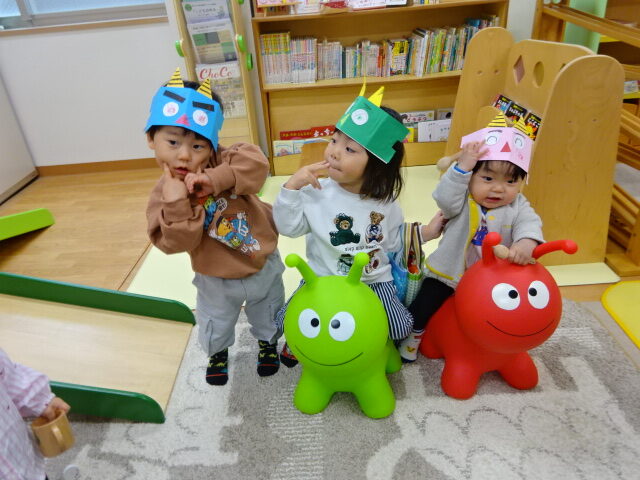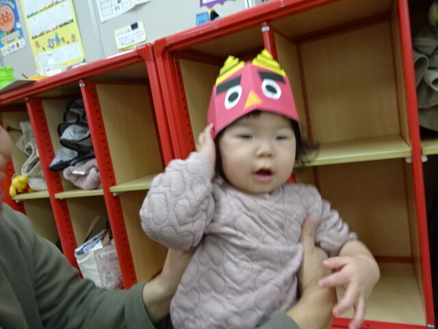お面をかぶって「鬼だぞ~」と指でつのを表現して歩き回る子もいました♪