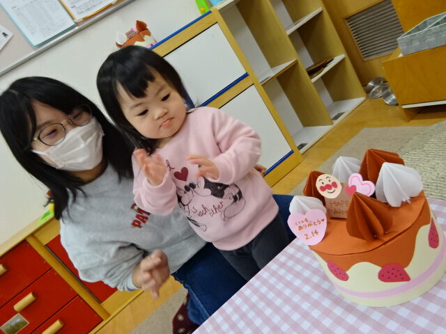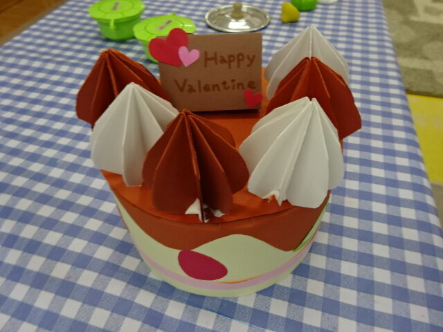 今日はバレンタインに向けた工作でケーキを作りました。