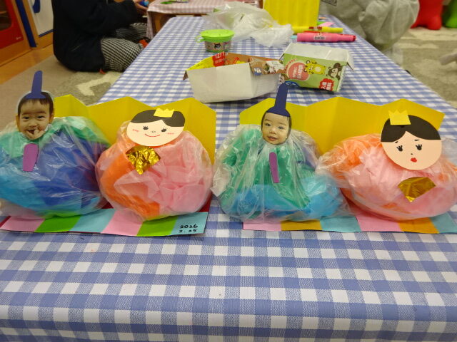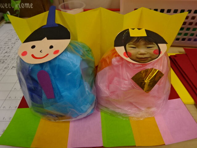 今日は3月3日のひなまつりに向けてお雛様の工作をしました。