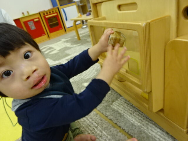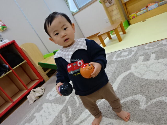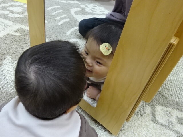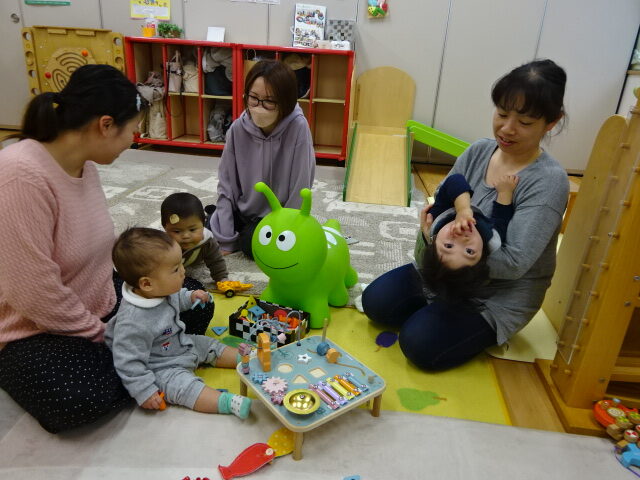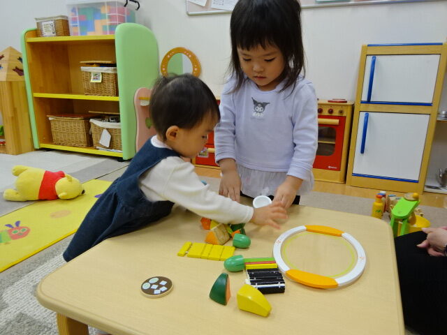 お友だちに興味がある子は近づいてみたり、おもちゃを触ったり、おうちの人とおもちゃを通してにこにこ遊んだりしていました。